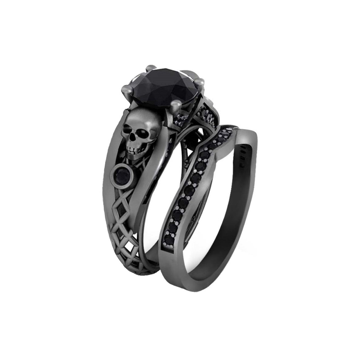Onyx Black Skull Ring Gothic Geeky Skull Engagement Ring Gun Metal Fn