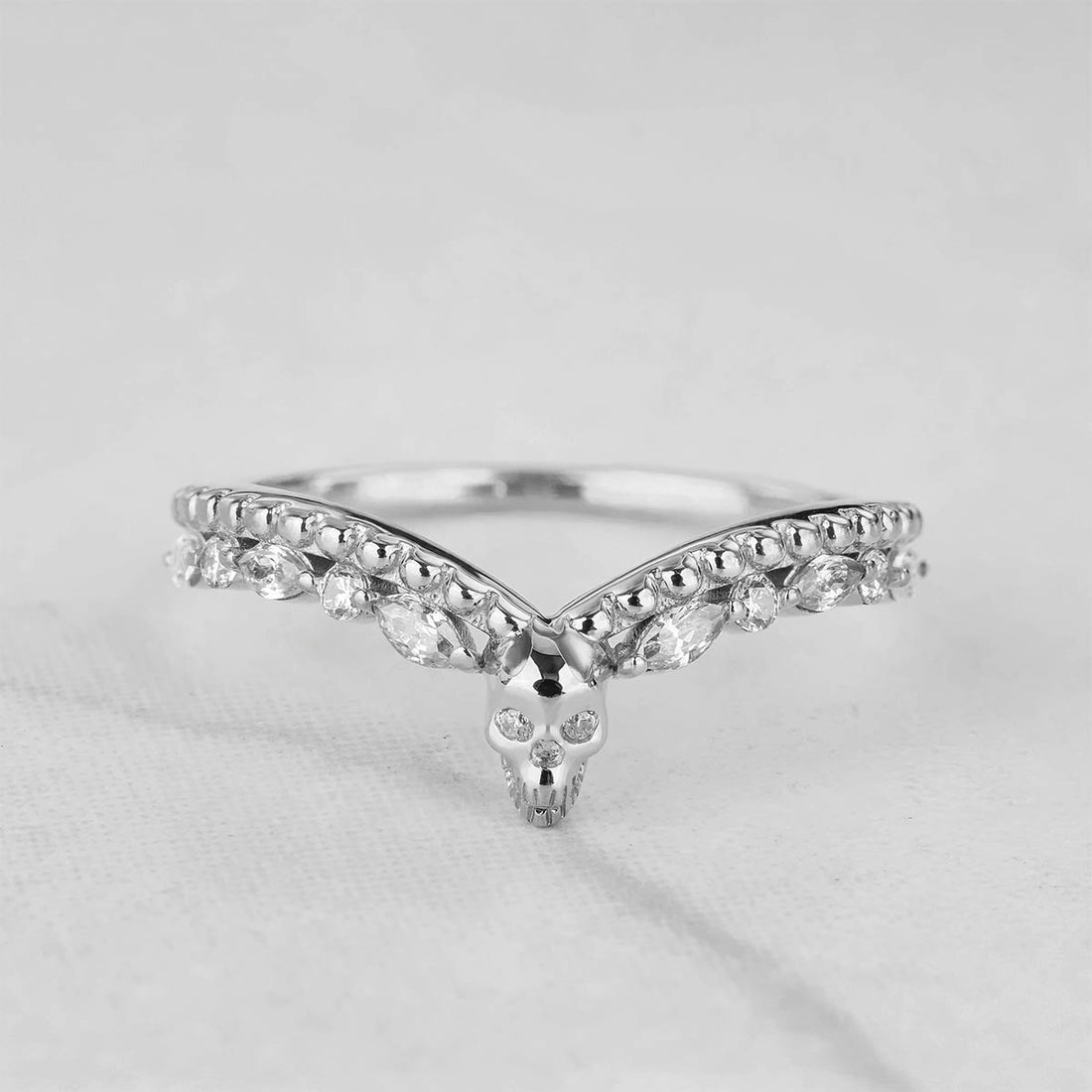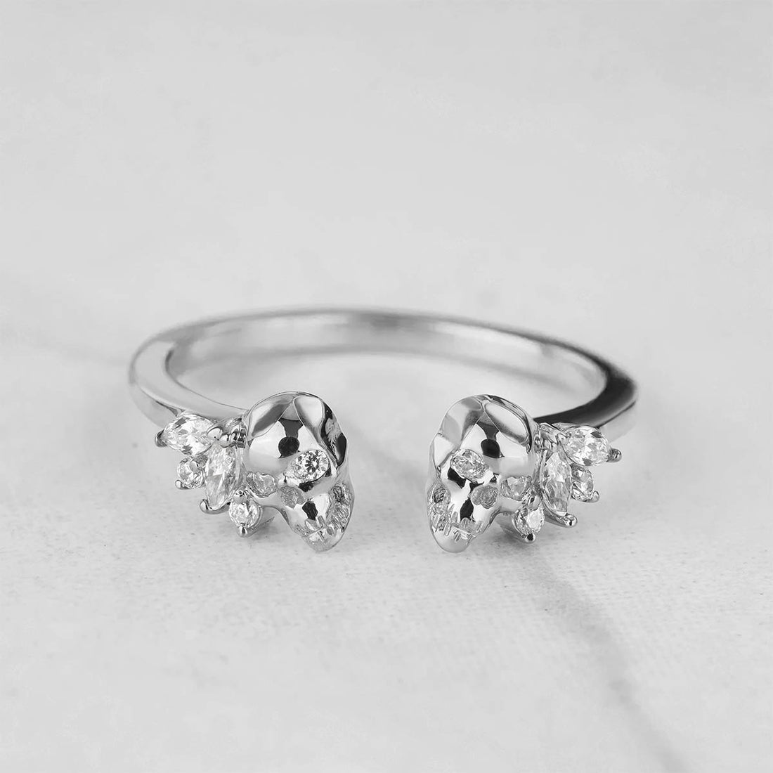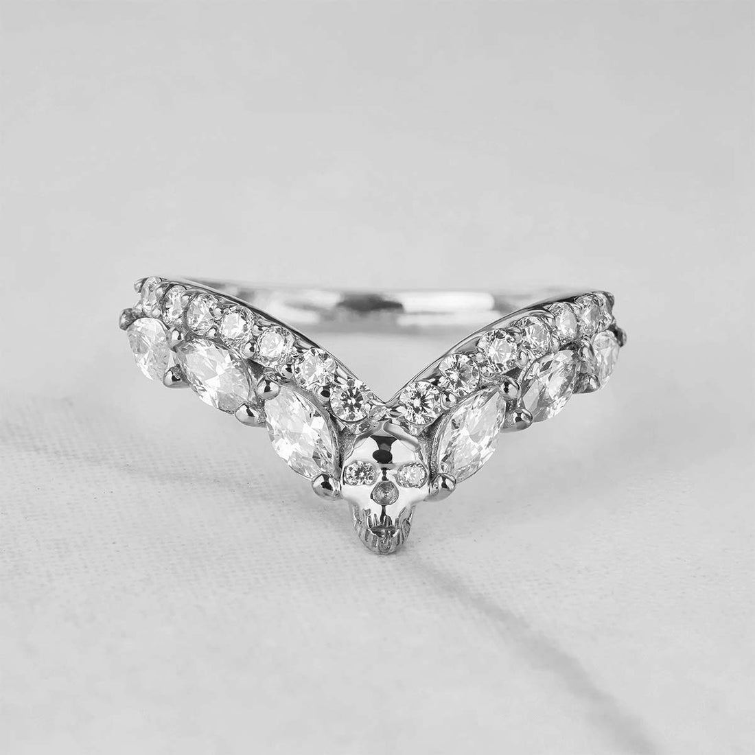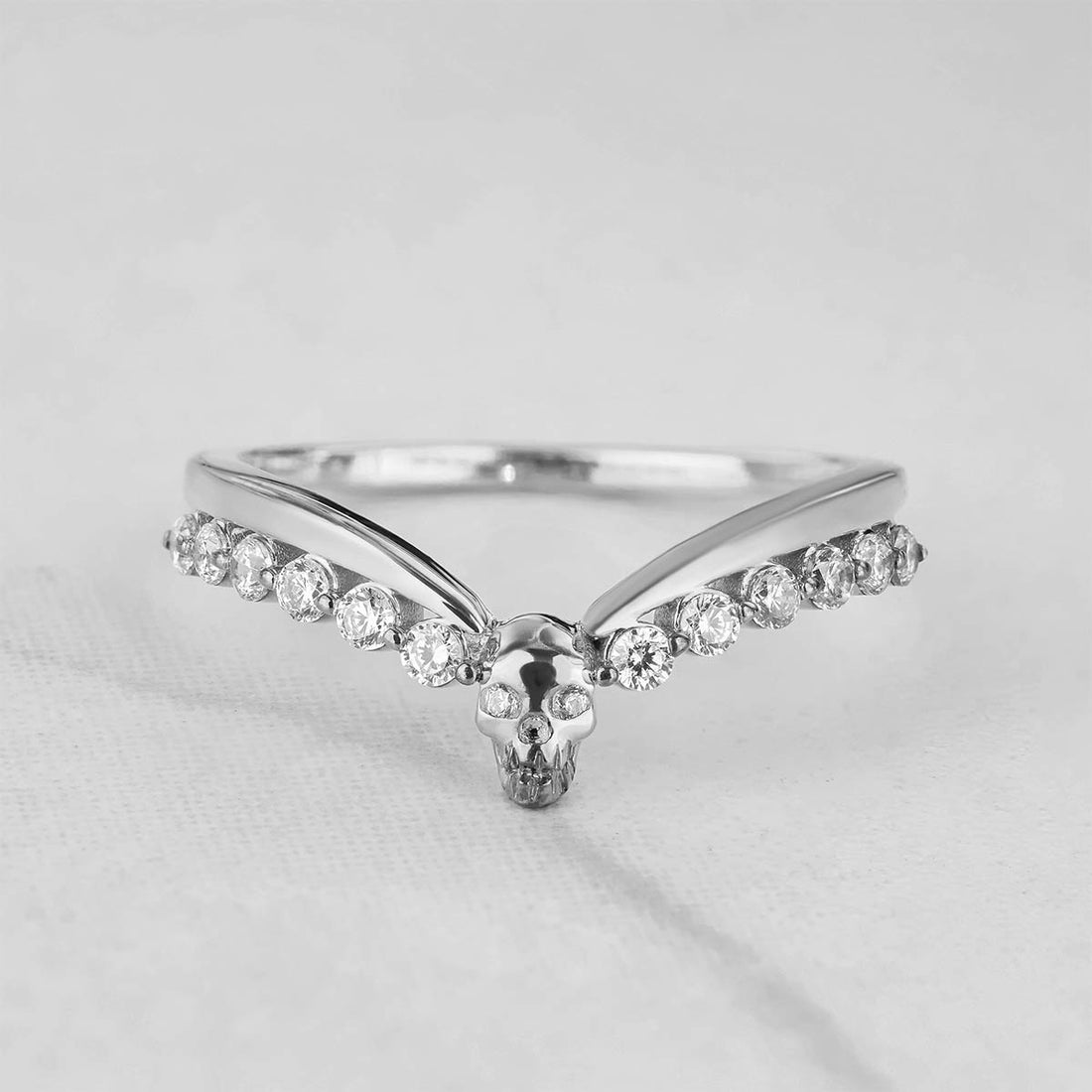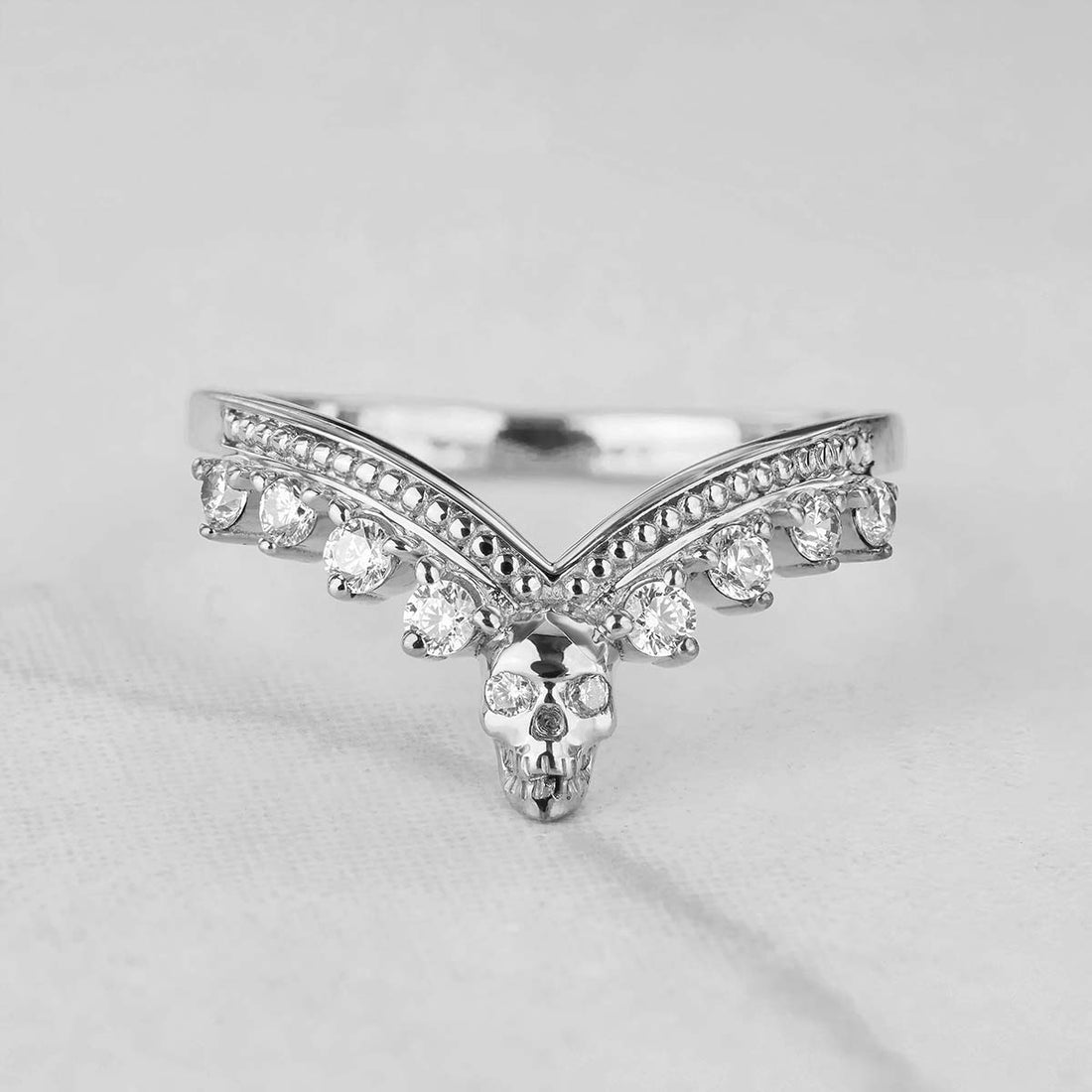 Diamond Skull Ring Silver Gothic Skull Engagement Ring For Women