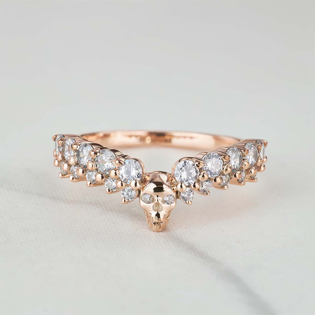 Moissanite Skull Enhancer Ring Engagement Wedding Band for Women Rose Gold
