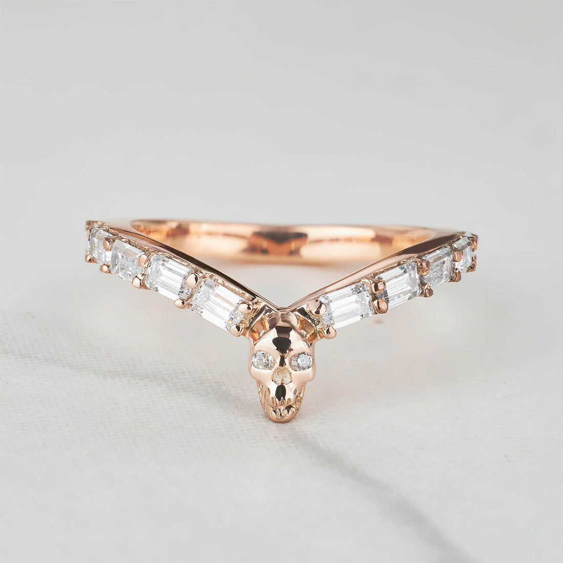 Moissanite Skull Ring Enhancer Curved Engagement Wedding Band Women Rose Gold
