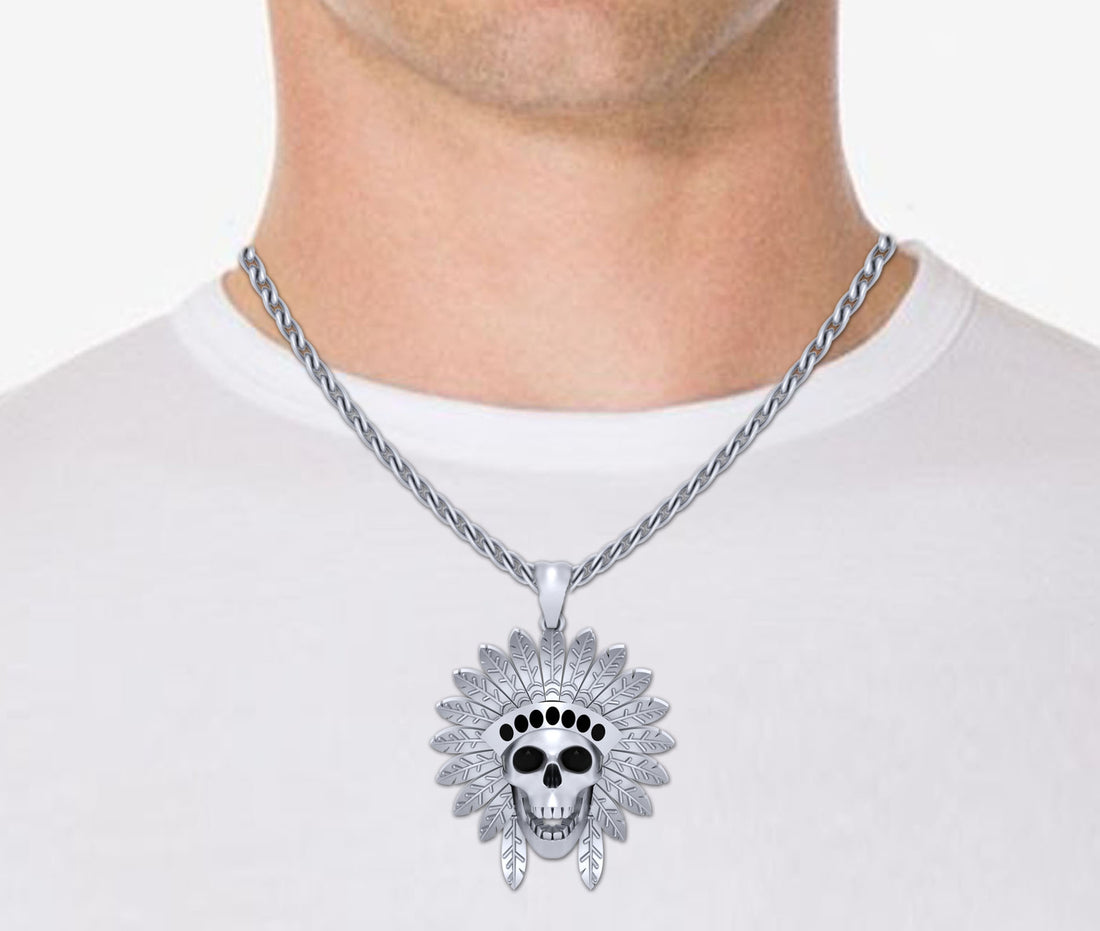 Red Indian Skull Pendant Black Onyx American Indian Skull Jewelry