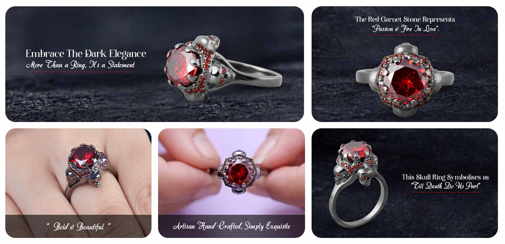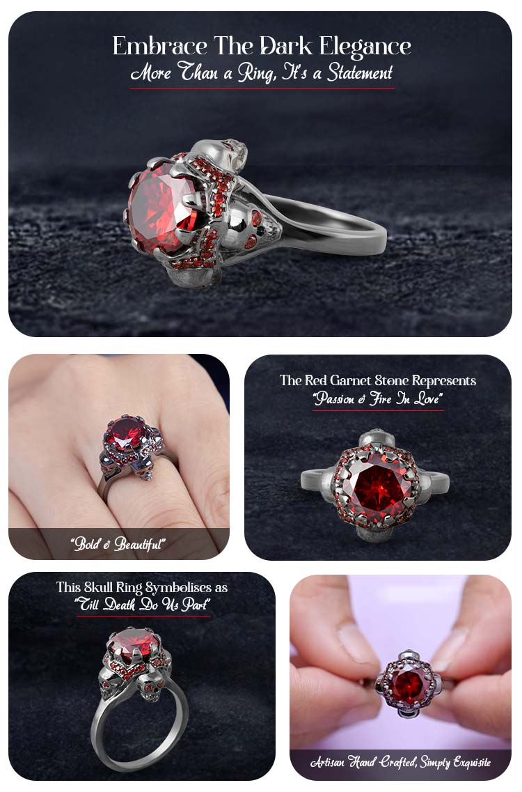 Learn moreVampire Gothic Engagement Ring Red Garnet Skull Ring Womens