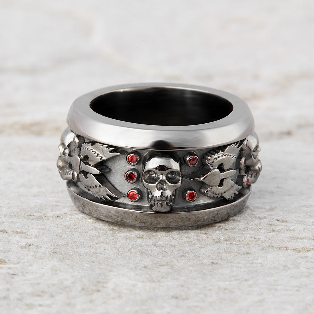 Mens Skull Wedding Band Wings Dagger Gothic Badass Bikers