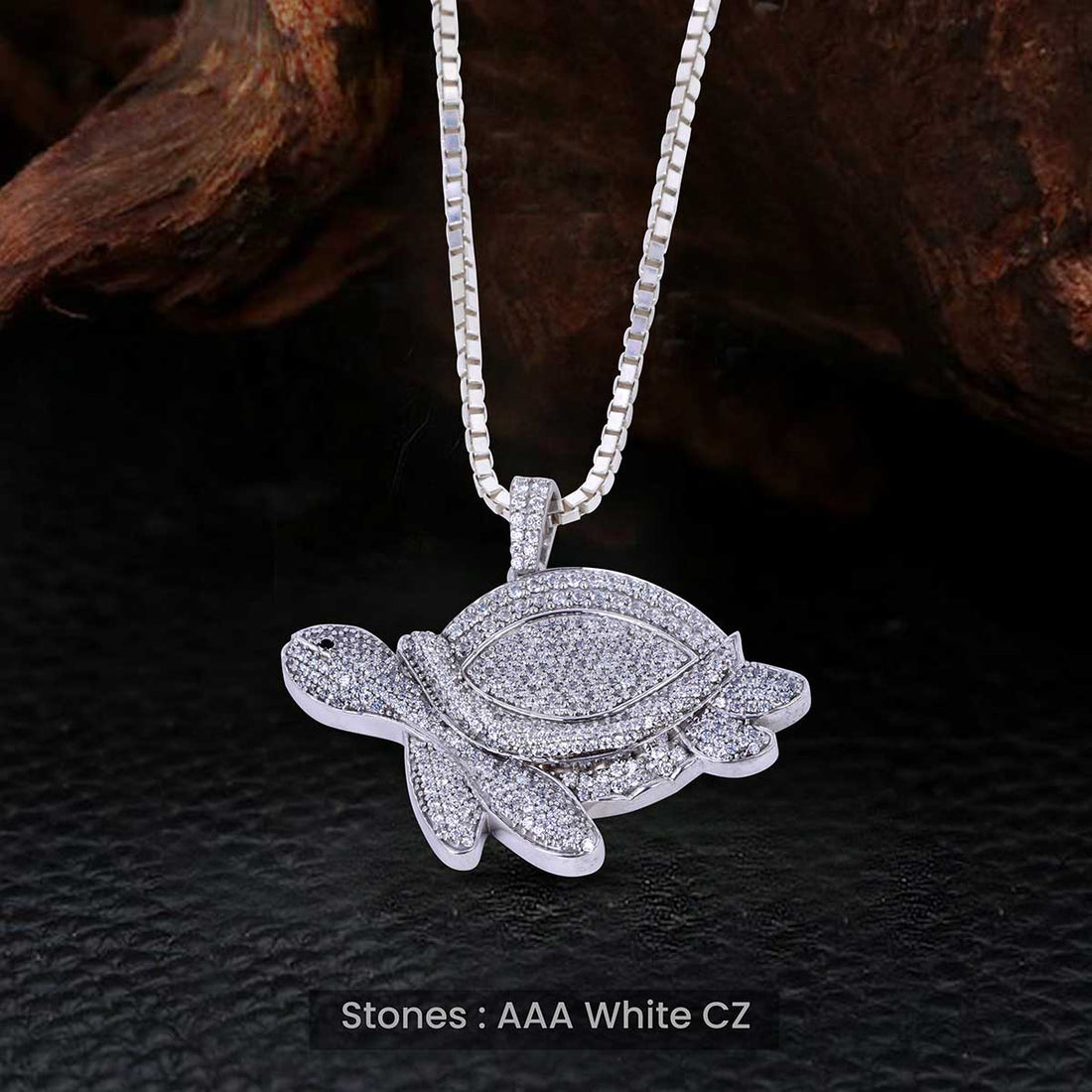 Diamond Turtle Pendant Necklace Iced Out Ocean Jewelry Silver