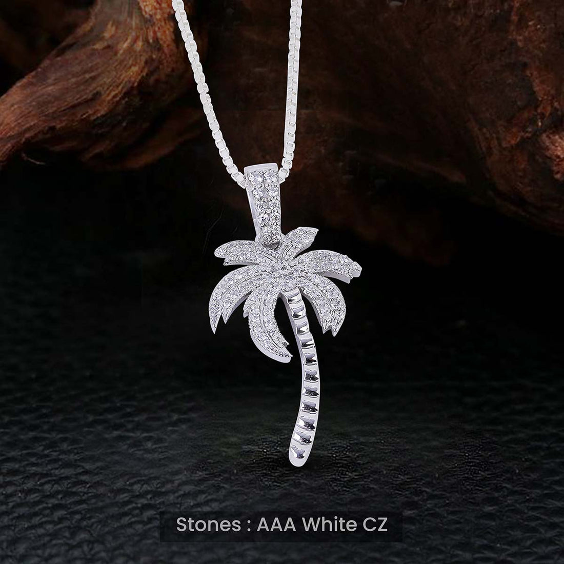 Moissanite Palm Tree Pendant Necklace Hawaiian Beach Tropical Jewelry