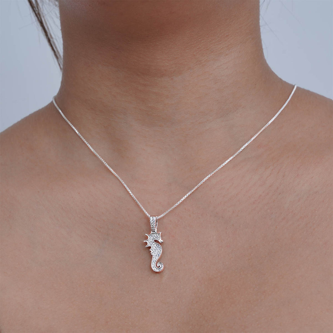 Seahorse Pendant Necklace Iced out Ocean Jewelry Sterling Silver