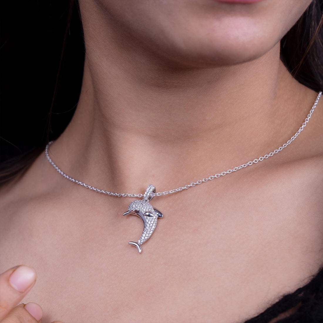 Dolphin Pendant Necklace Iced Out Ocean Jewelry Sterling Silver