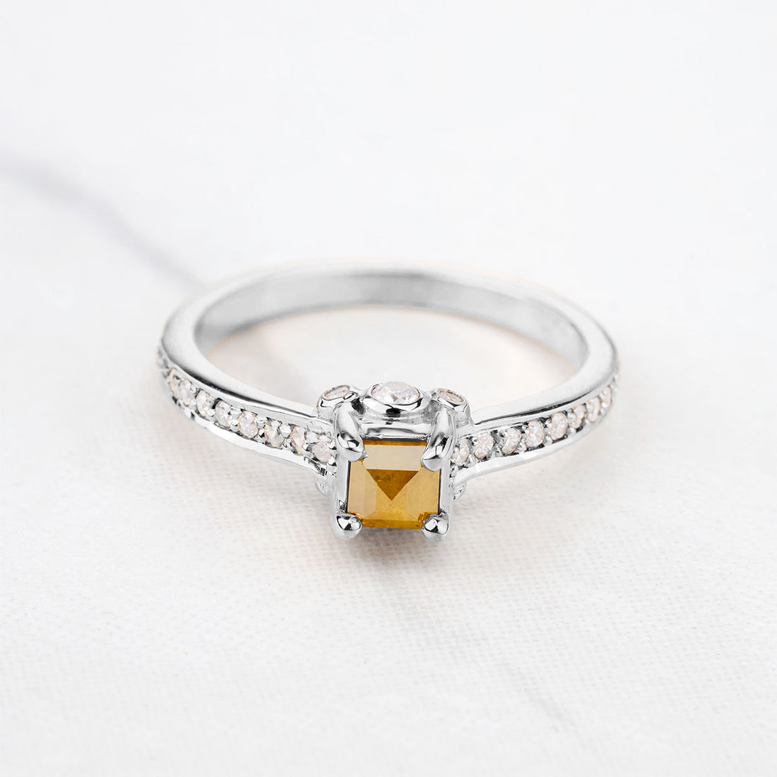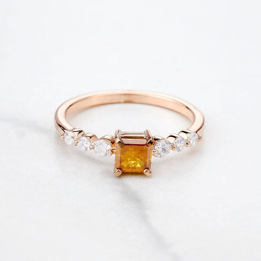 Princess Rose Cut Yellow Natural Rustic Diamond Ring for Women