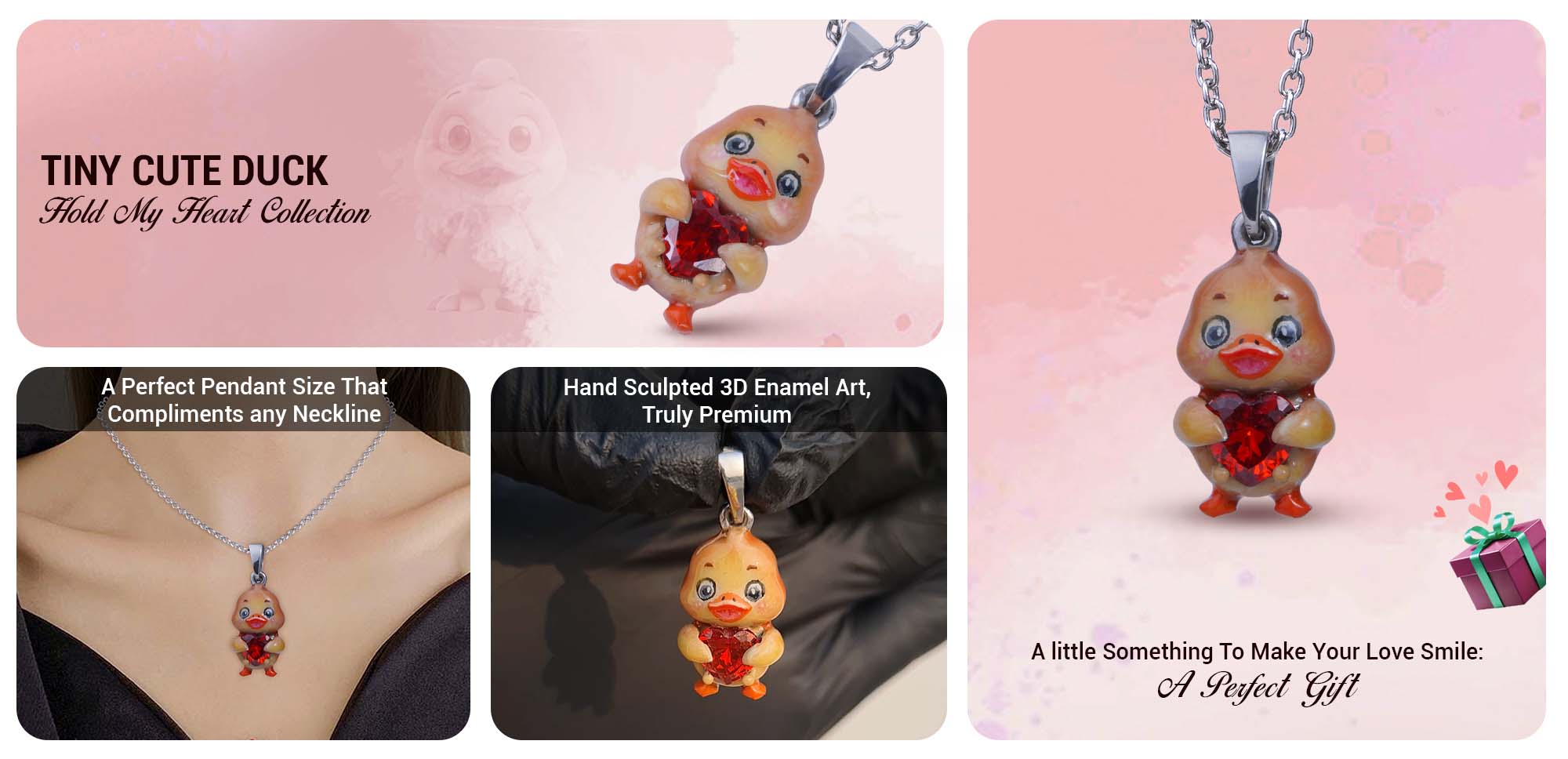 Baby Duck Necklace 3D Enamel Duckling Pendant Kids Jewelry