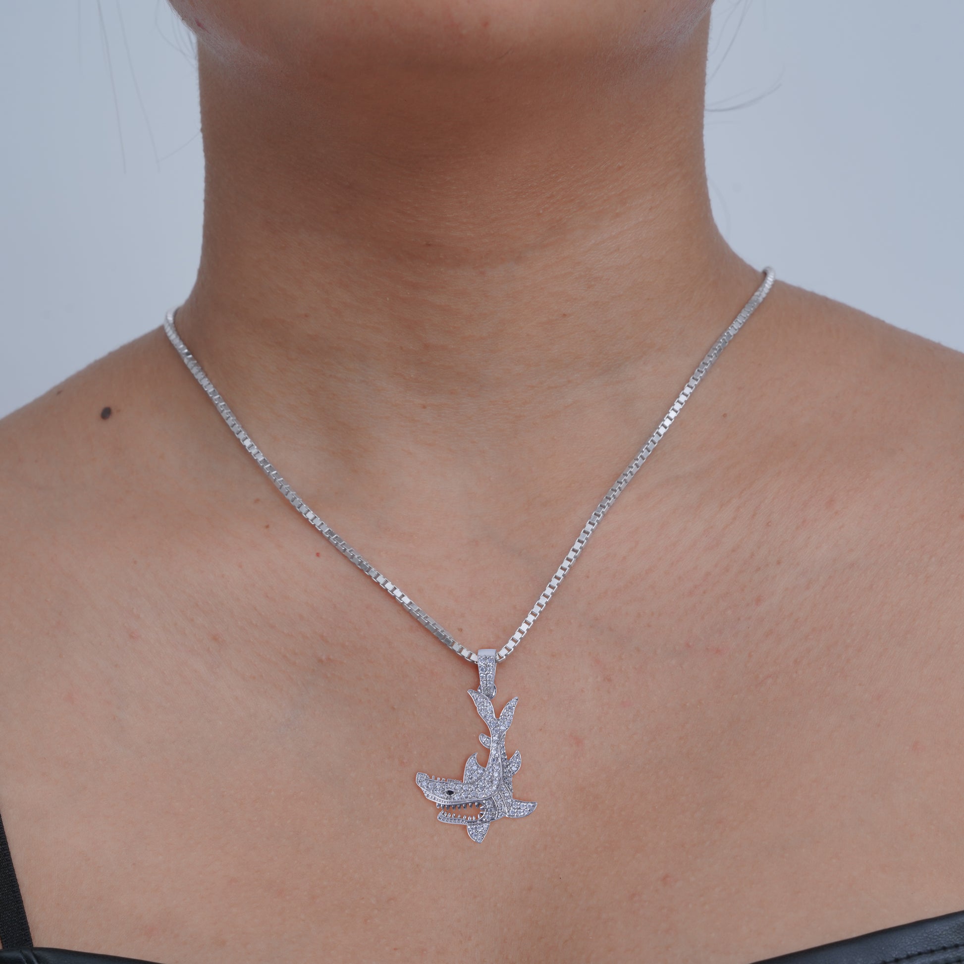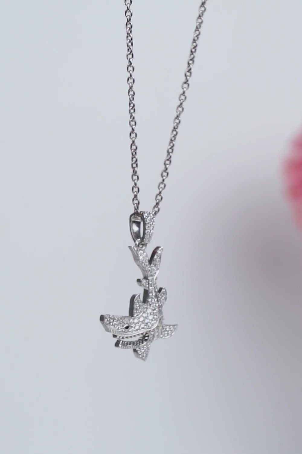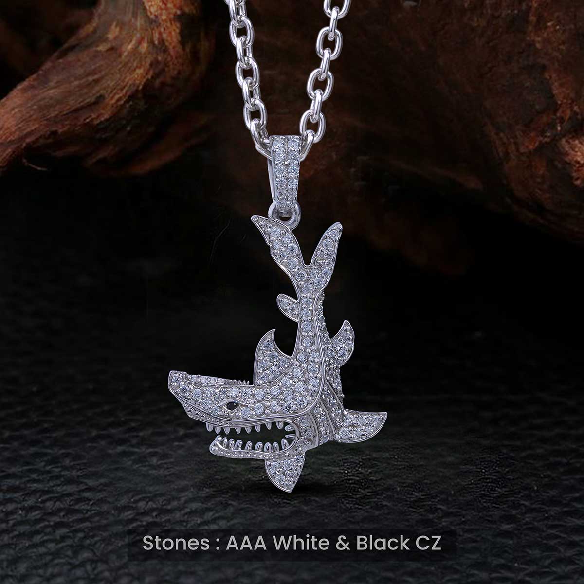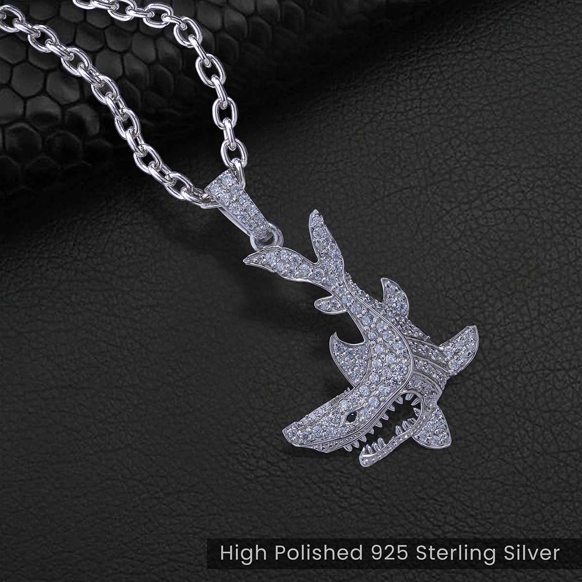 Iced Out Shark Pendant Necklace Sterling Silver Ocean Jewelry