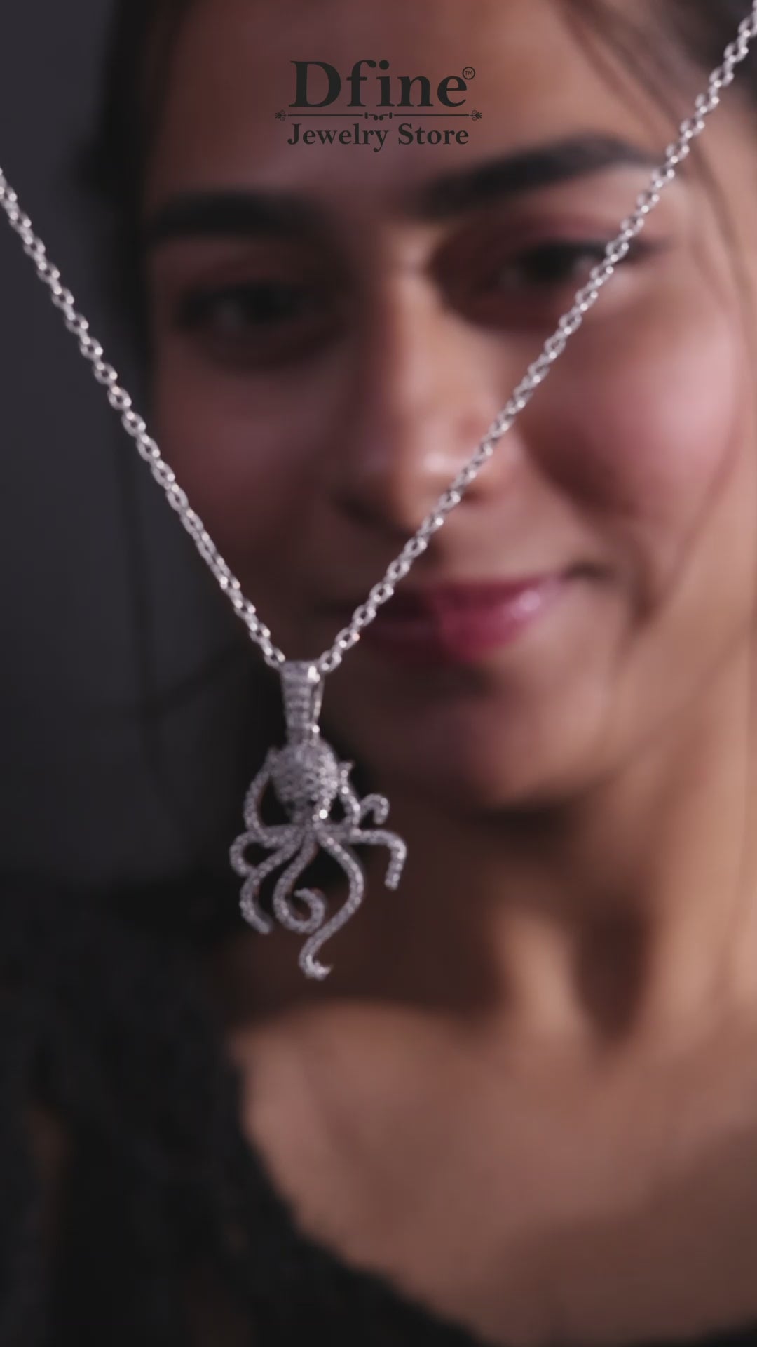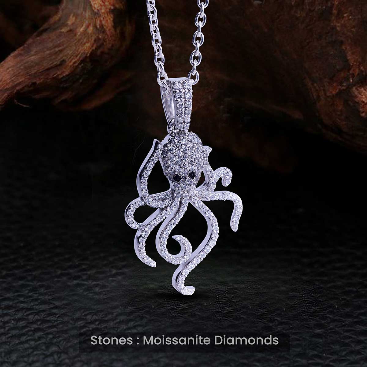 Moissanite Iced Out Octopus Necklace Pendant Chain Sea Jewelry