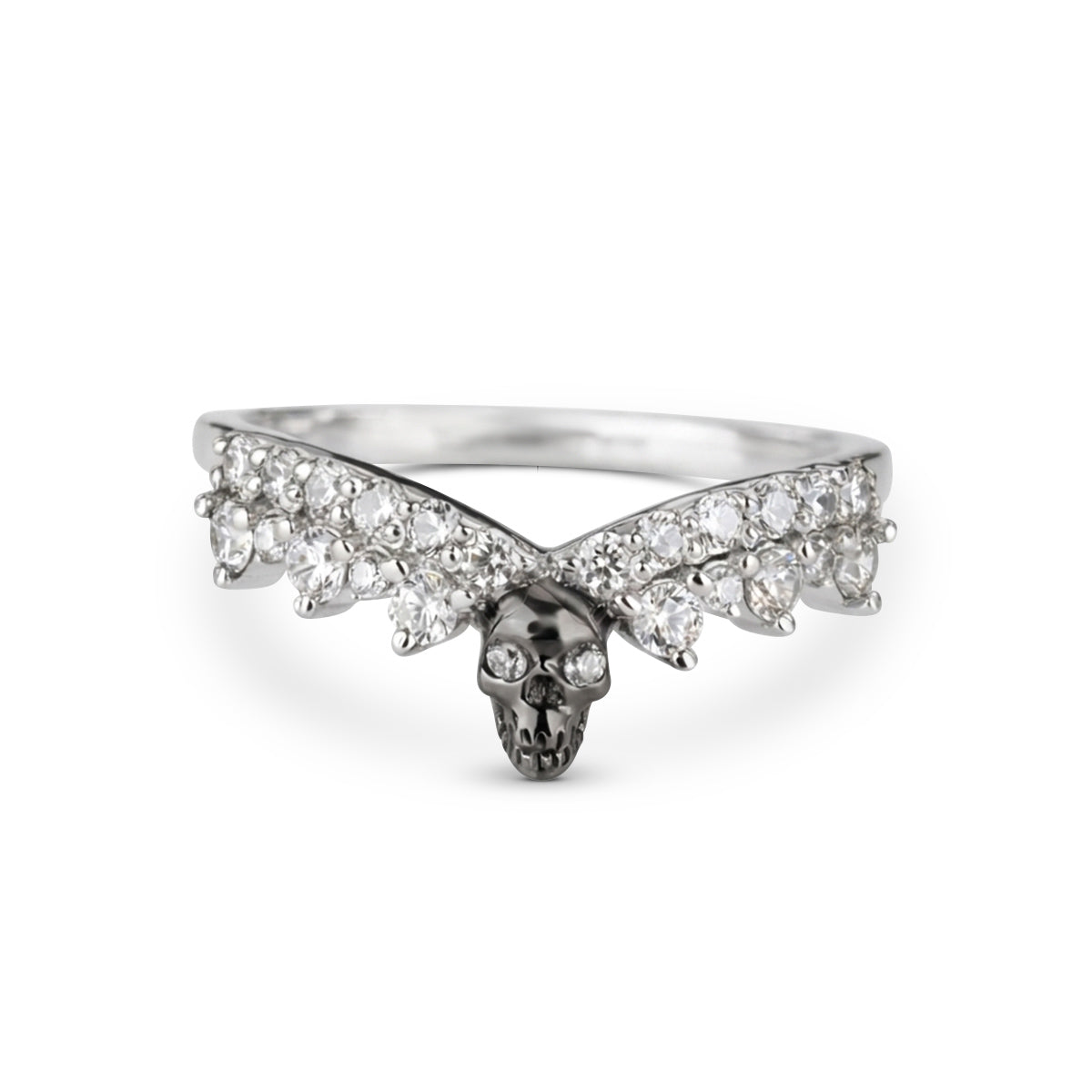 Skull Enhancer Wedding Band for Women Curved AAA CZ Anniversary Ring