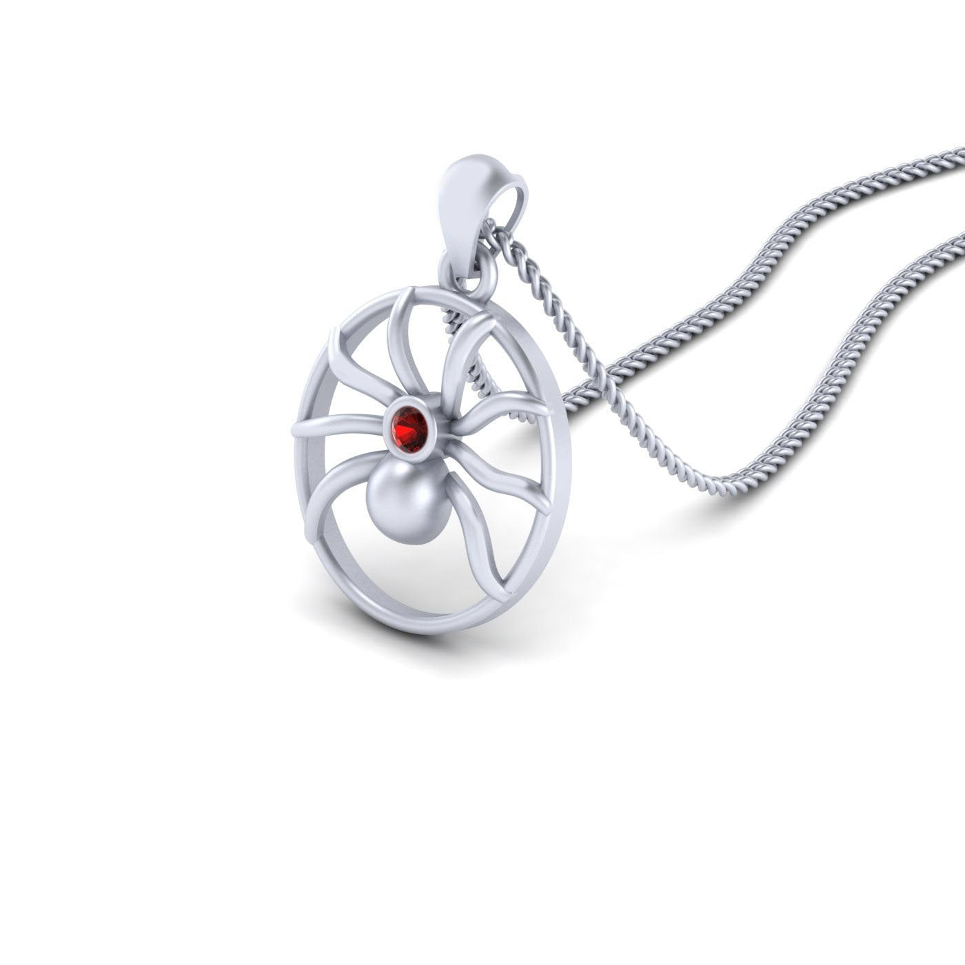 Spider Pendant Silver 0.06ct Red Garnet Spider Locket Gothic Jewelry