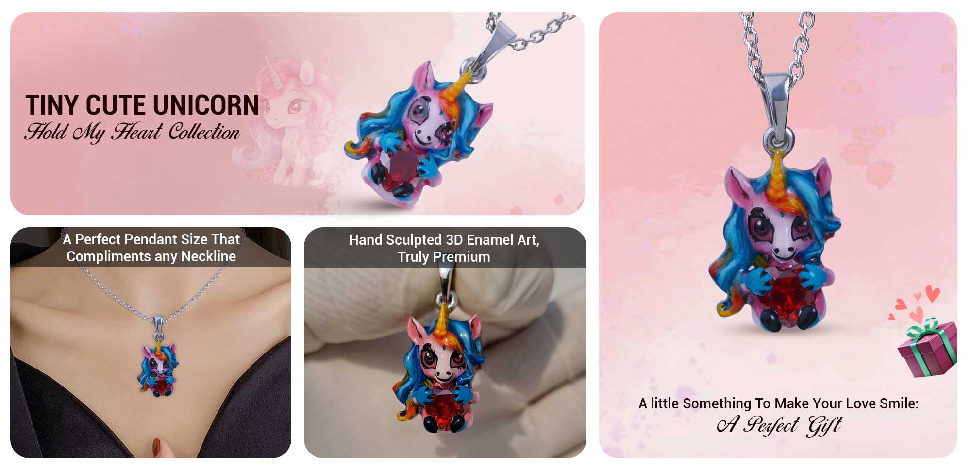 Unicorn Pendant Necklace for Kids 3D Enamel Fairytale Jewelry