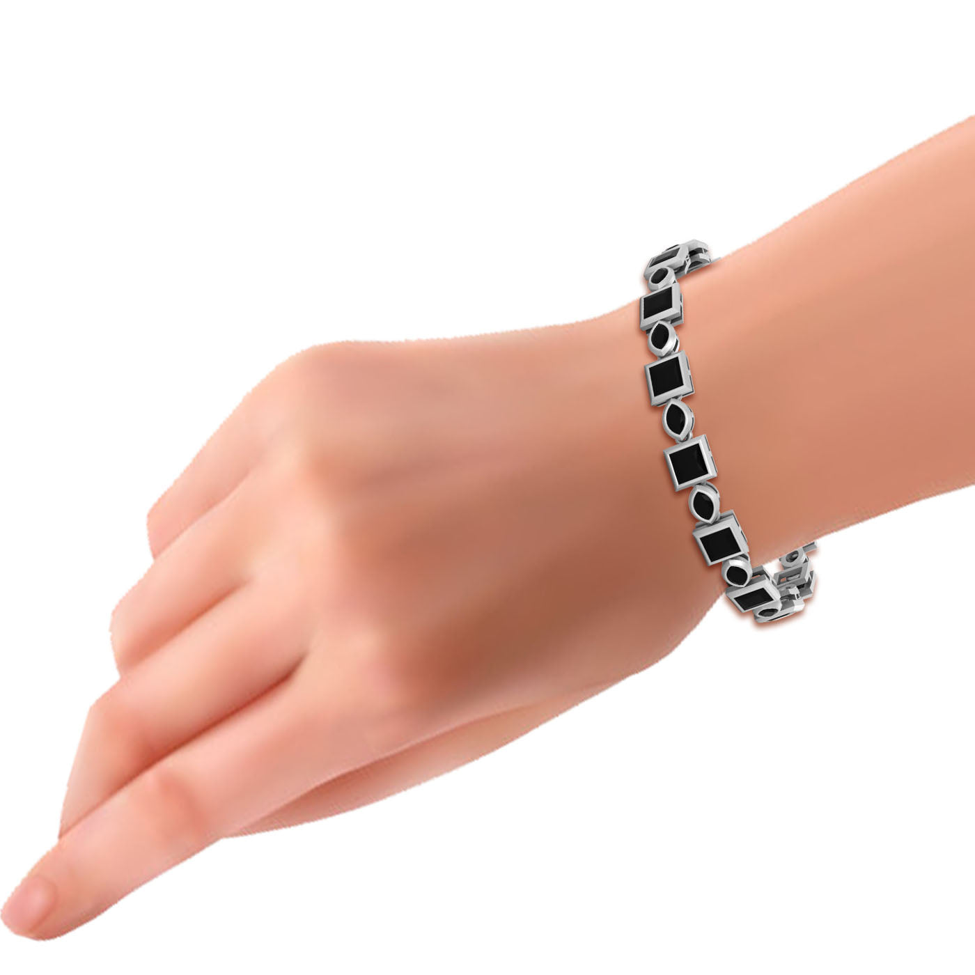 White Gold Tennis Bracelet Black Moissanite and Natural Black Diamond