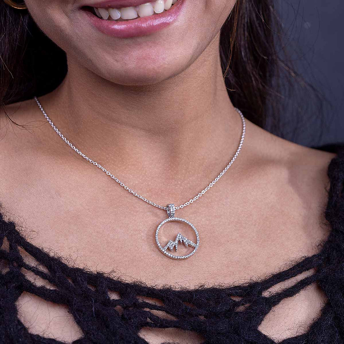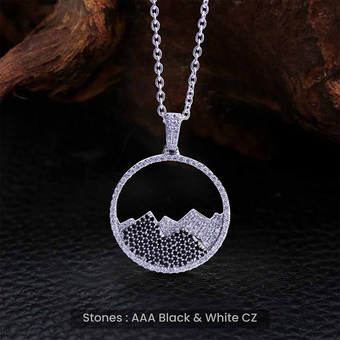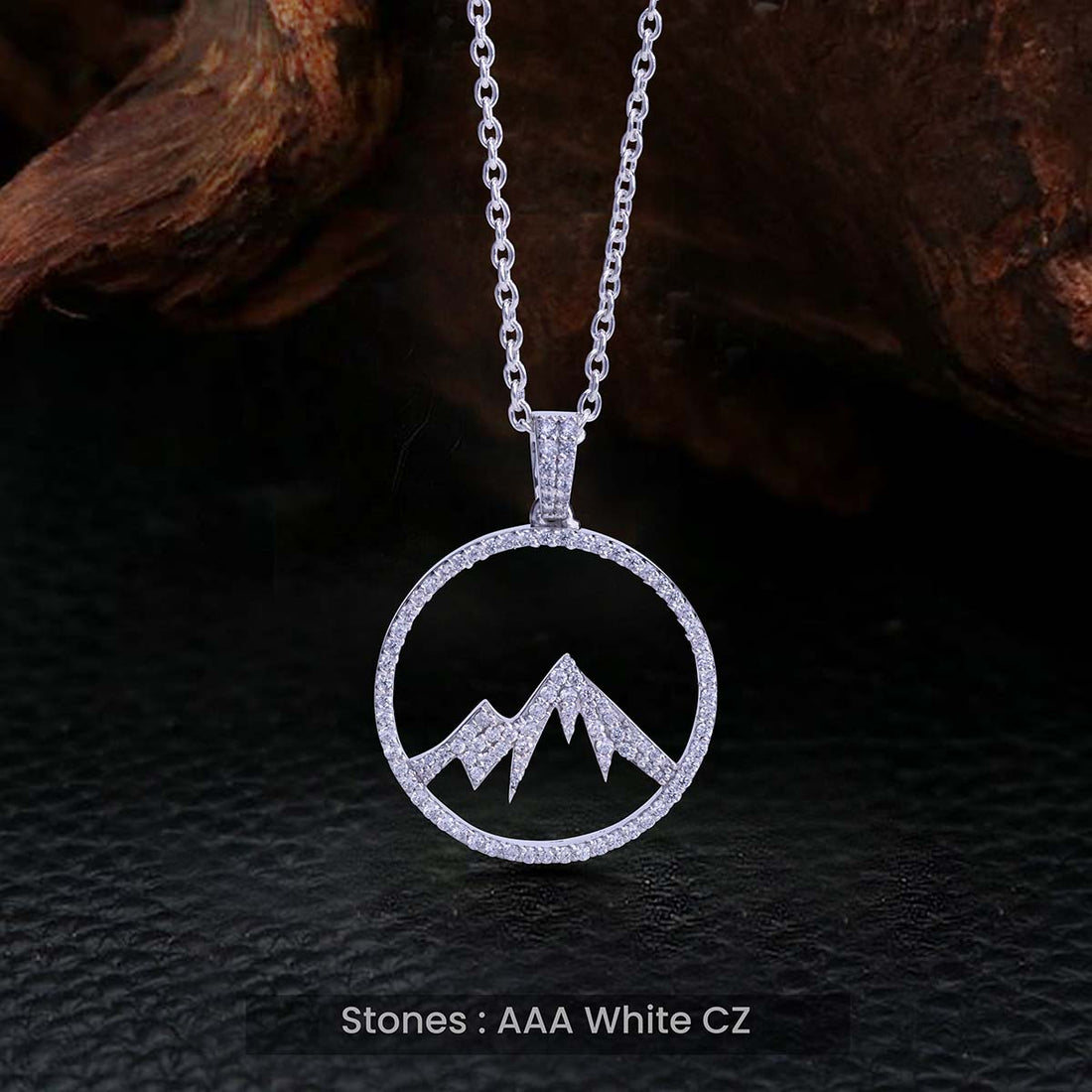 Mountain Peak Pendant Necklace Features a Finely Crafted Design of Mountain Peaks with a Circle...