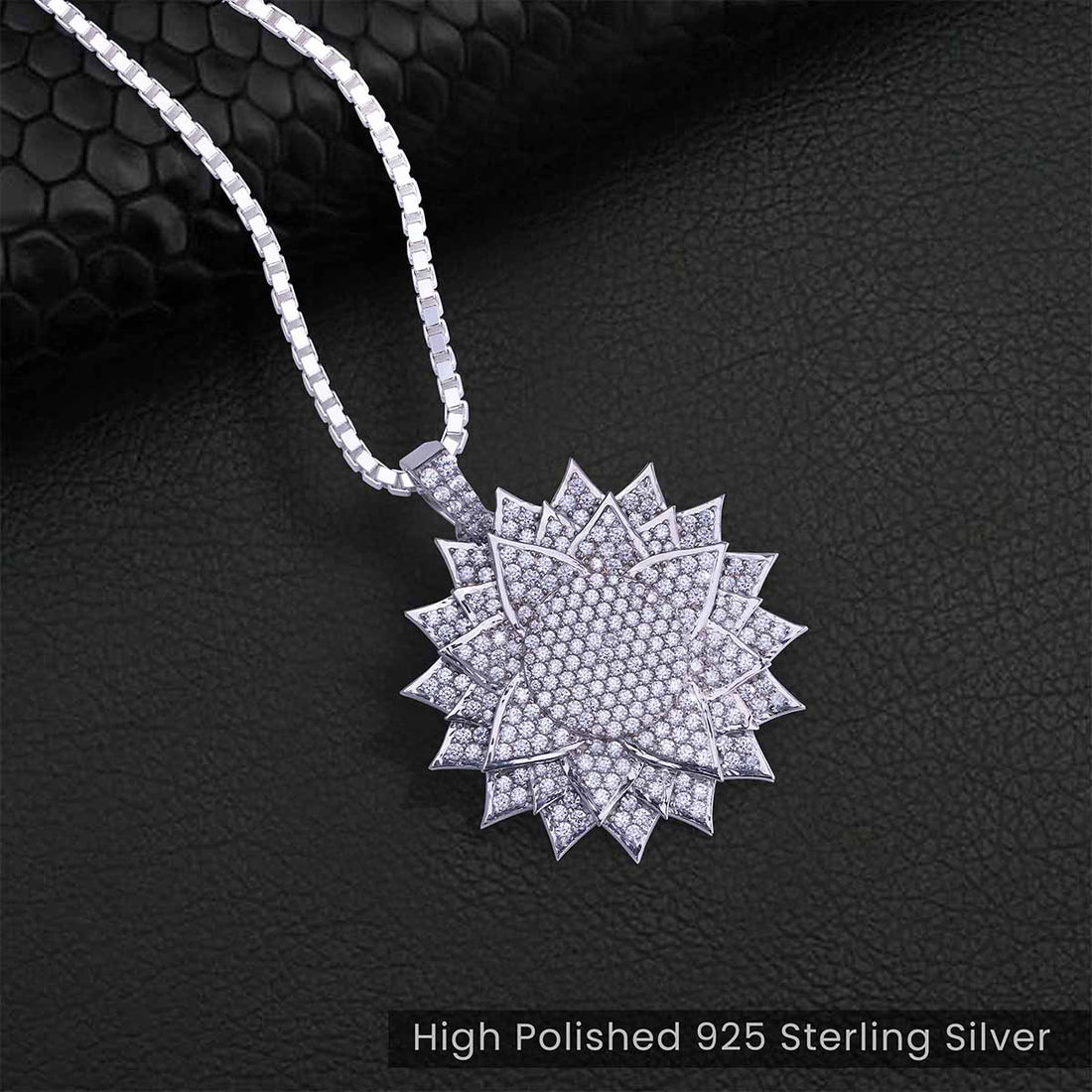 Iced Out Sun Flower Pendant Necklace Brings Joy and Happiness into Your Life, Features Intricately...
