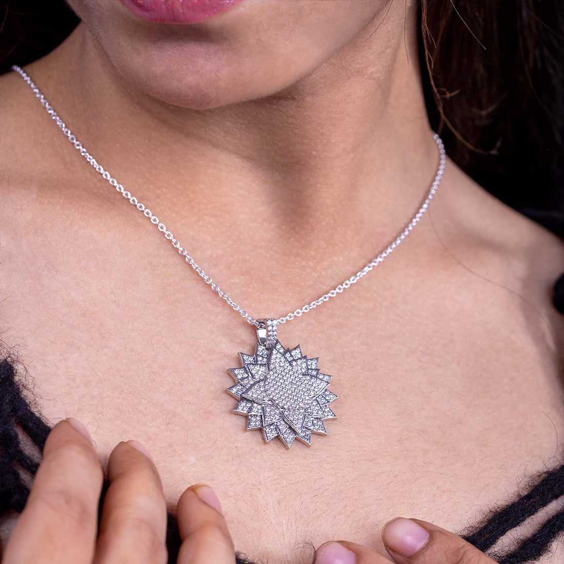 Iced Out Lotus Necklace Sterling Silver Lotus Pendant for Girls