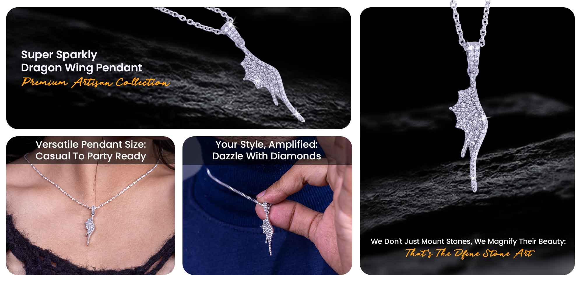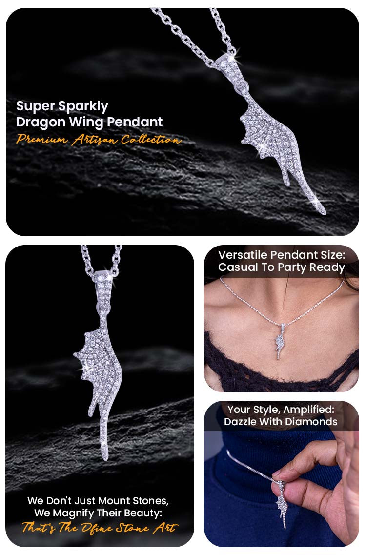 Learn moreDragon Wing Pendant Necklace Iced Out Jewelry Sterling Silver