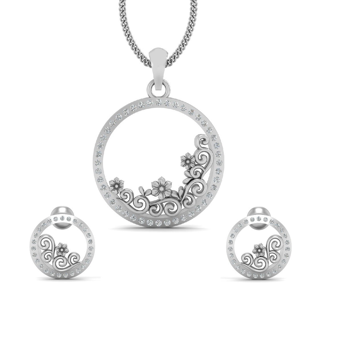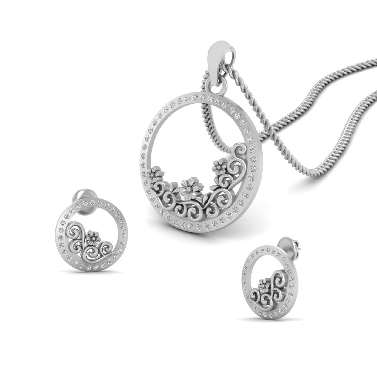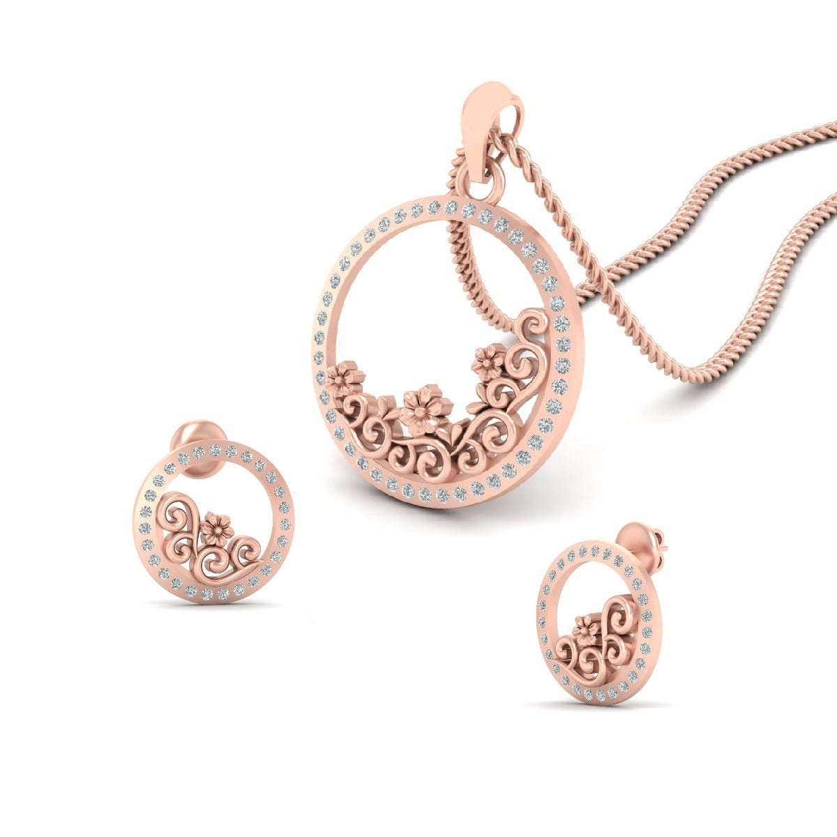 Filigree Pendant Earrings Set Diamond Flower Locket Earrings Set