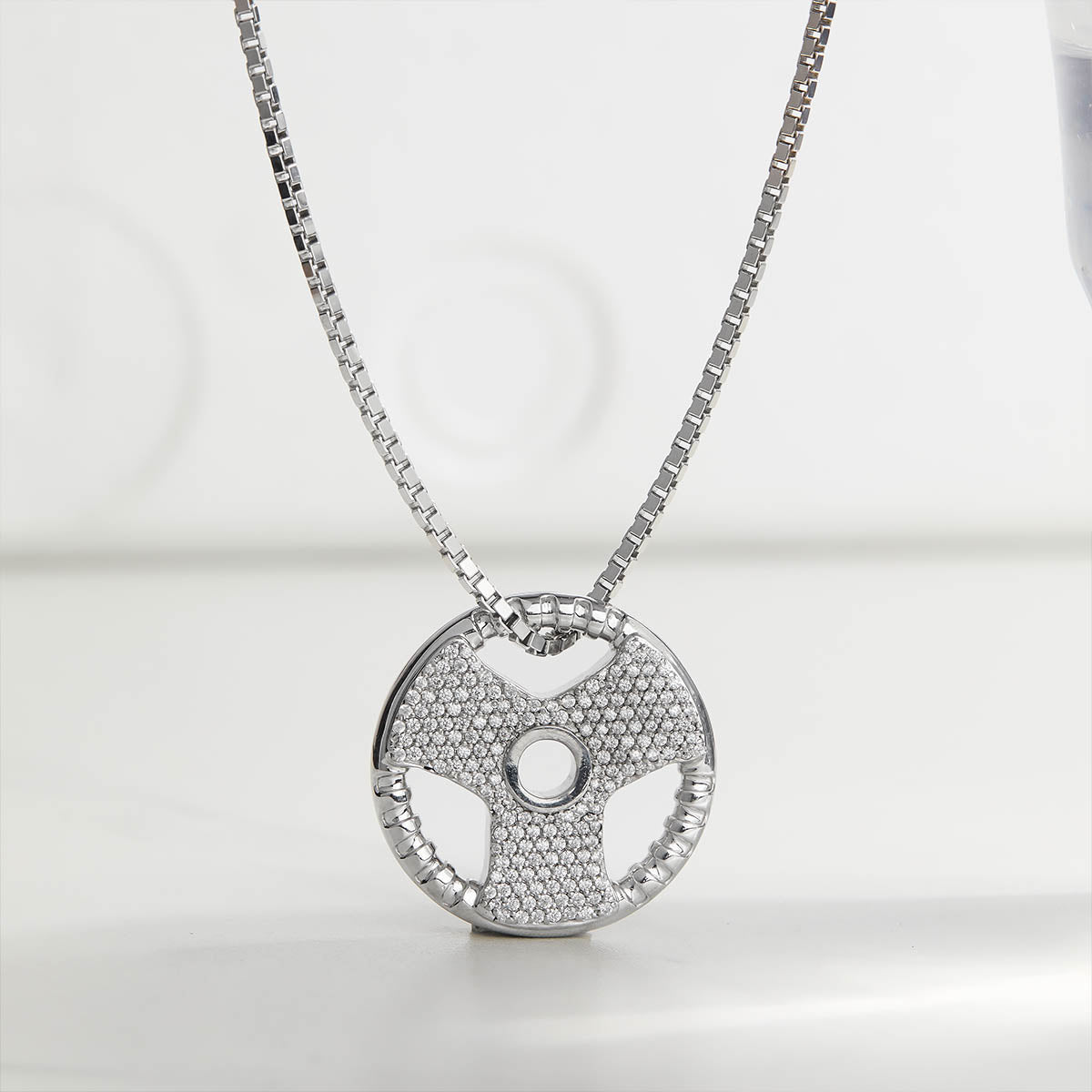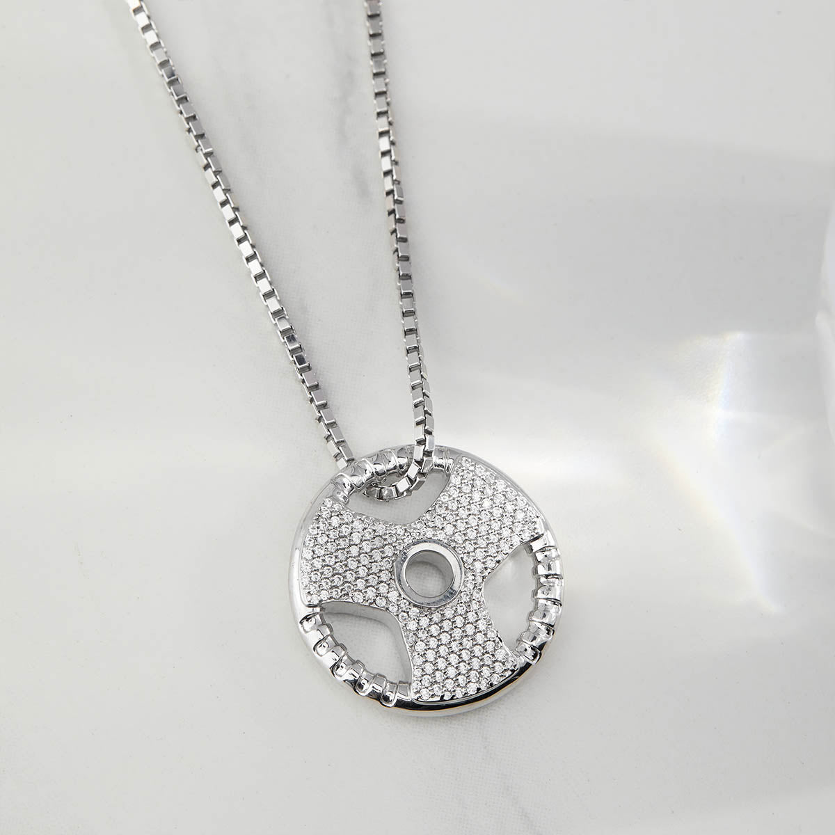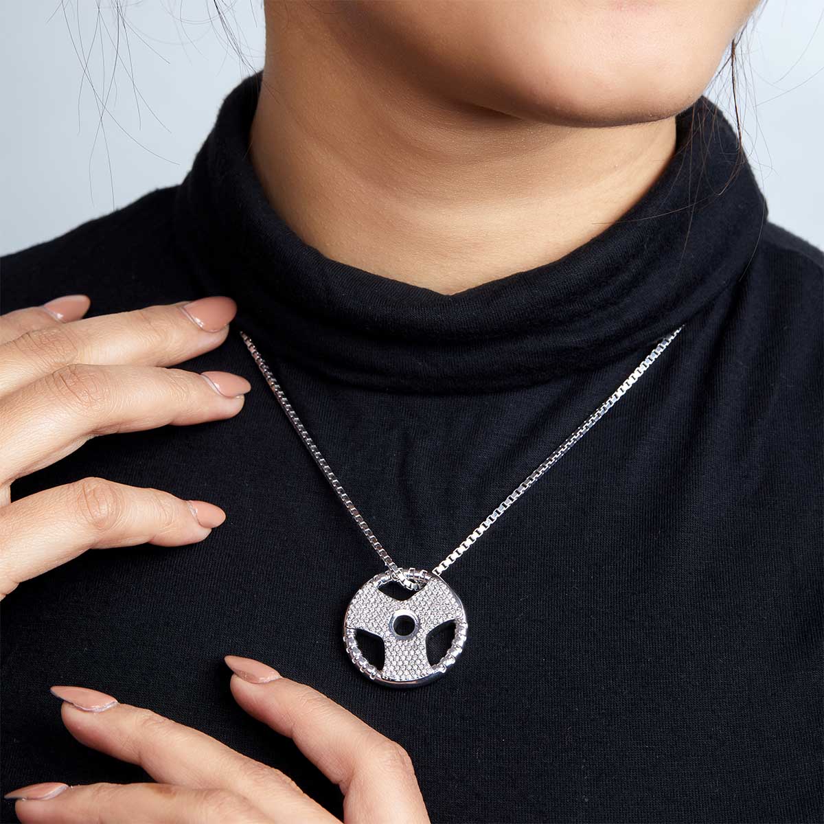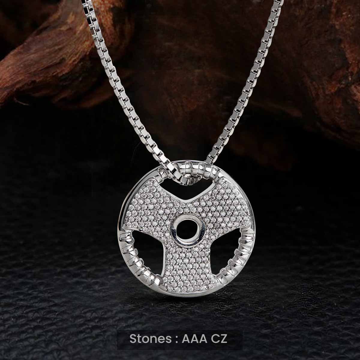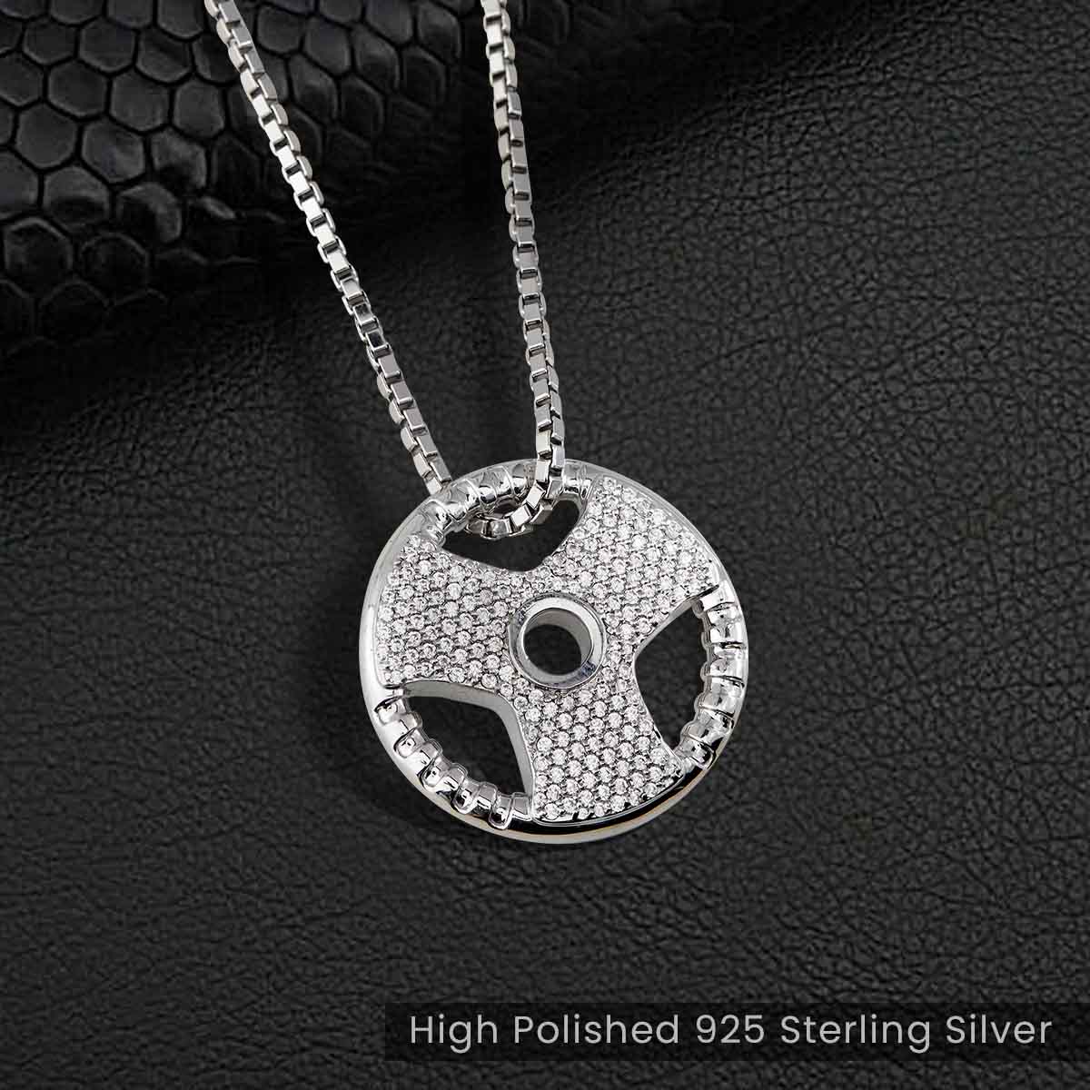 Learn moreIced Out Barbell Necklace Weight Plate Pendant Fitness Jewelry