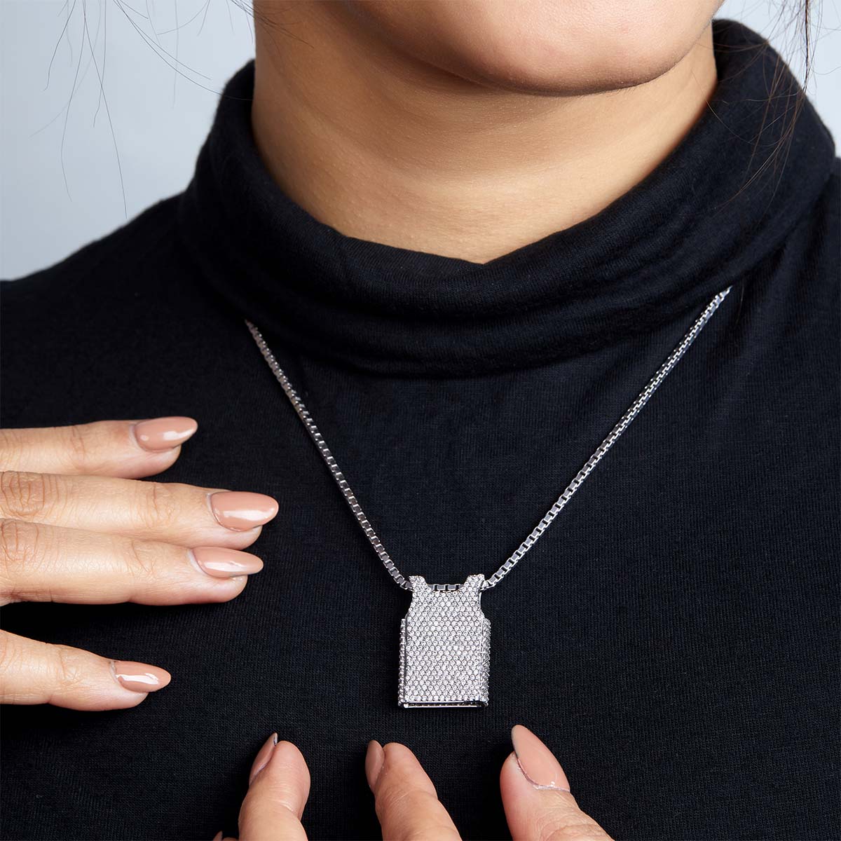 Really nice pendant with good weight and sparkle. The jersey design stands out, though I would have liked a slightly longer chain option. Still, it looks great and feels solid.