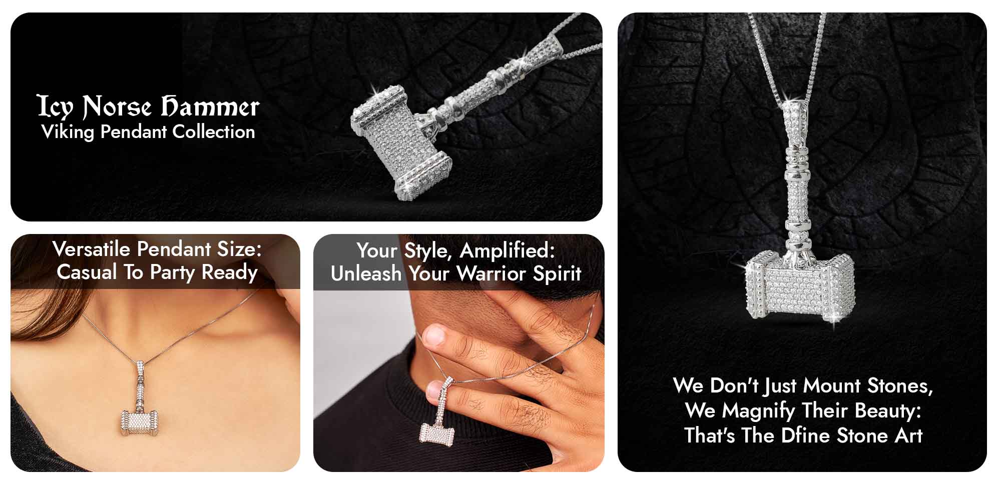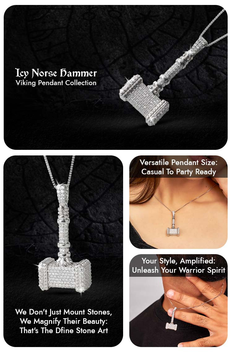 Learn moreIced Out Thor's Hammer Necklace Pendant Moissanite Diamond Hip Hop Jewelry Silver