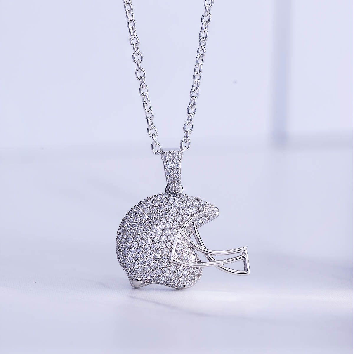Moissanite iced out baseball helmet pendant necklace sport jewelry