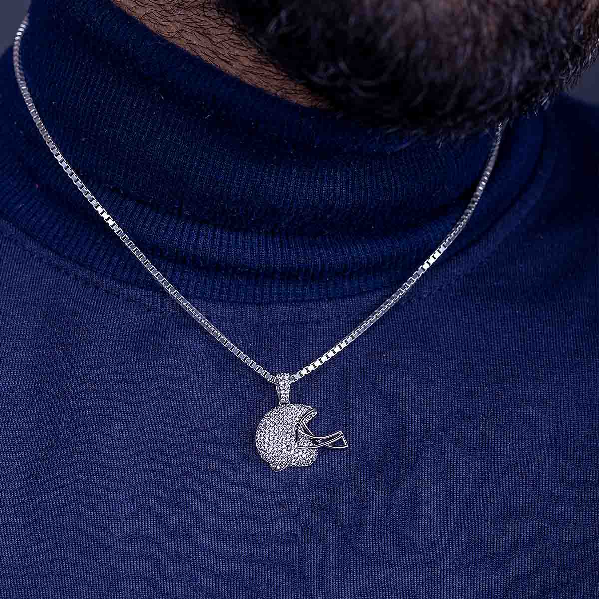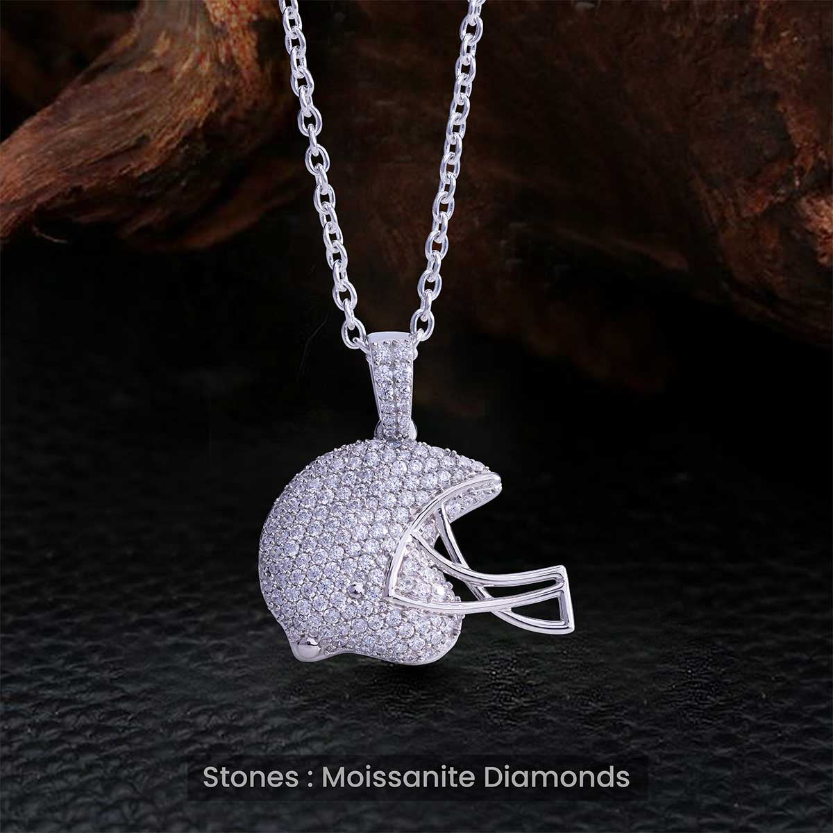 This iced out helmet pendant is fire! The craftsmanship is top notch, and every Moissanite stone is set flawlessly. It shines under any light and makes a statement whether I’m at the ballpark or out with friends.