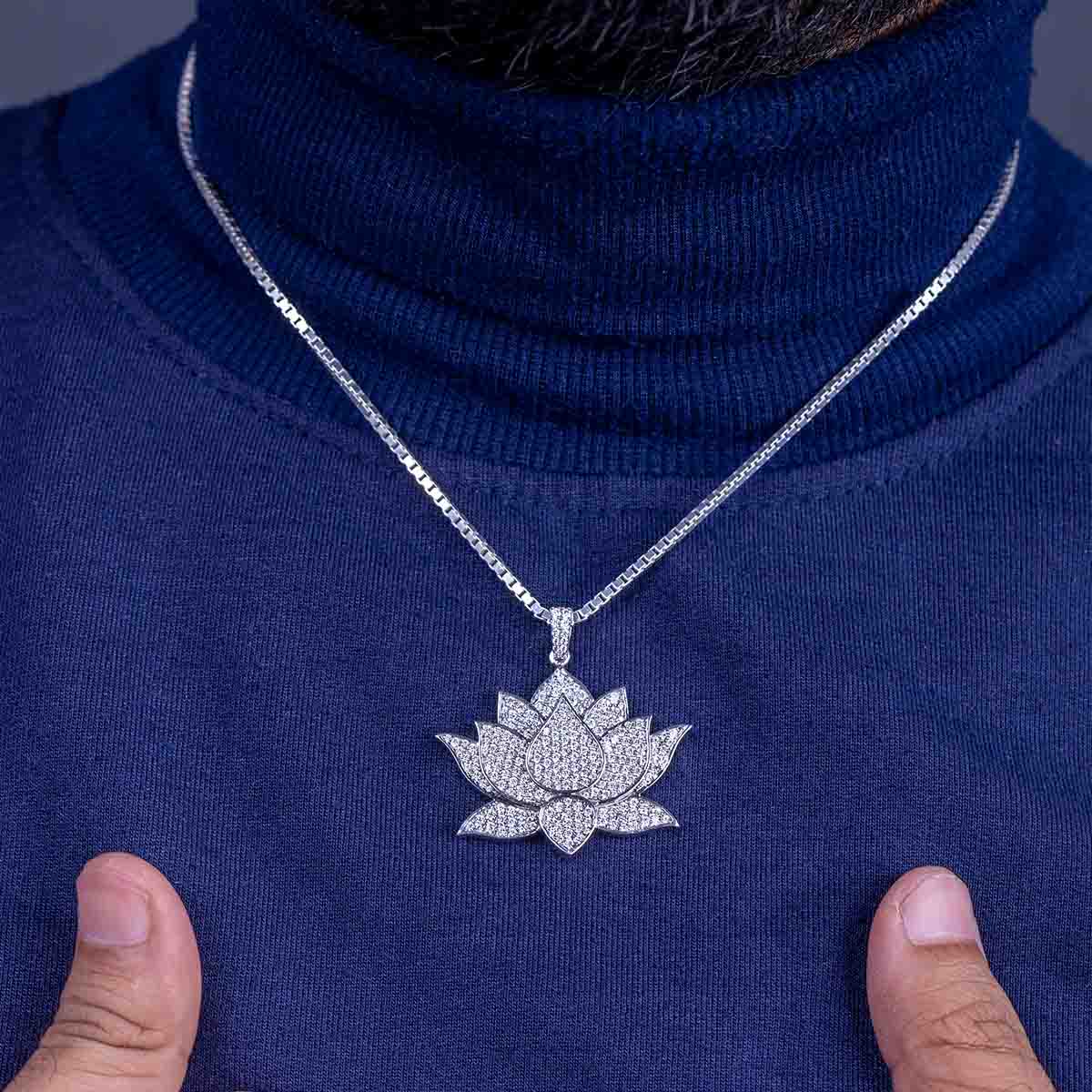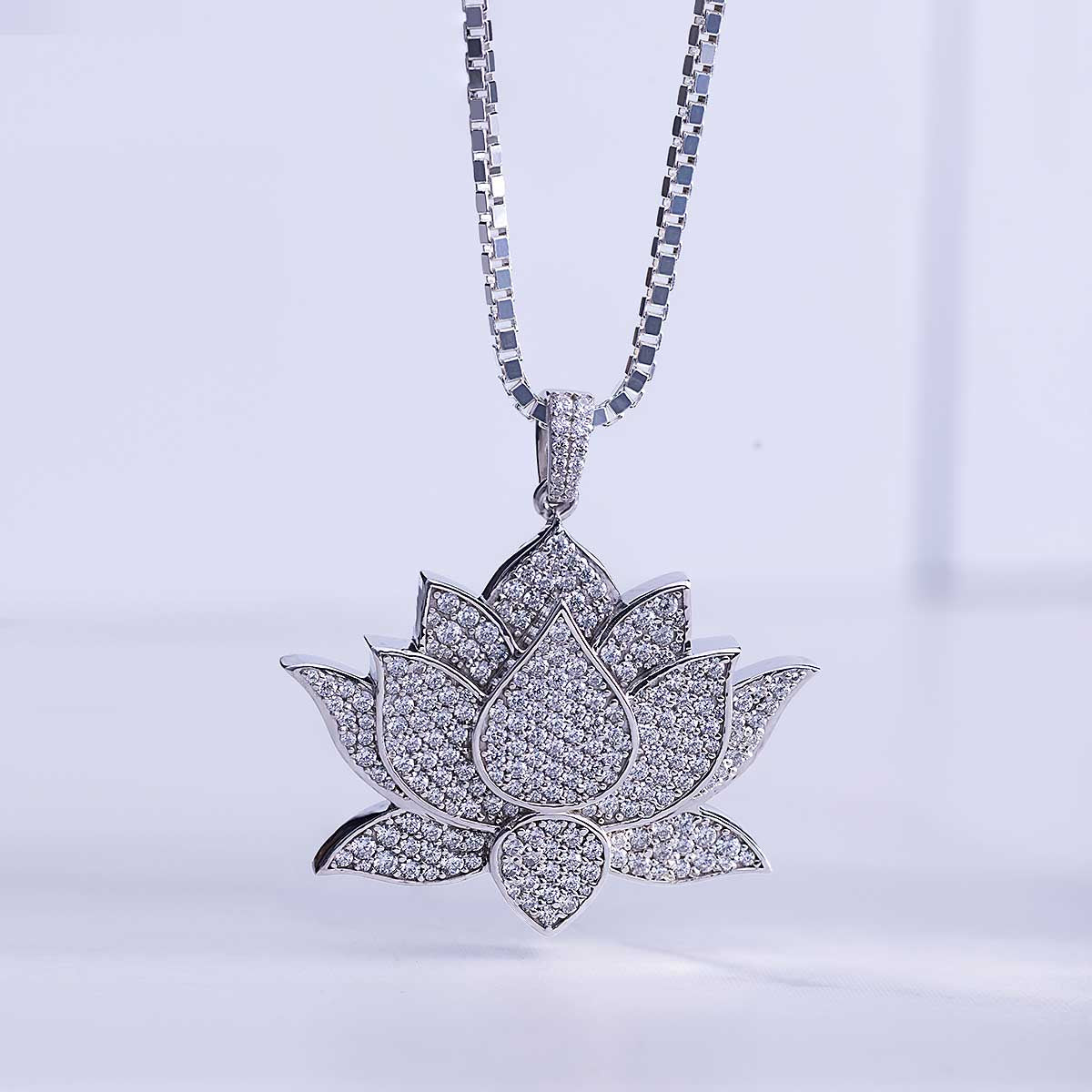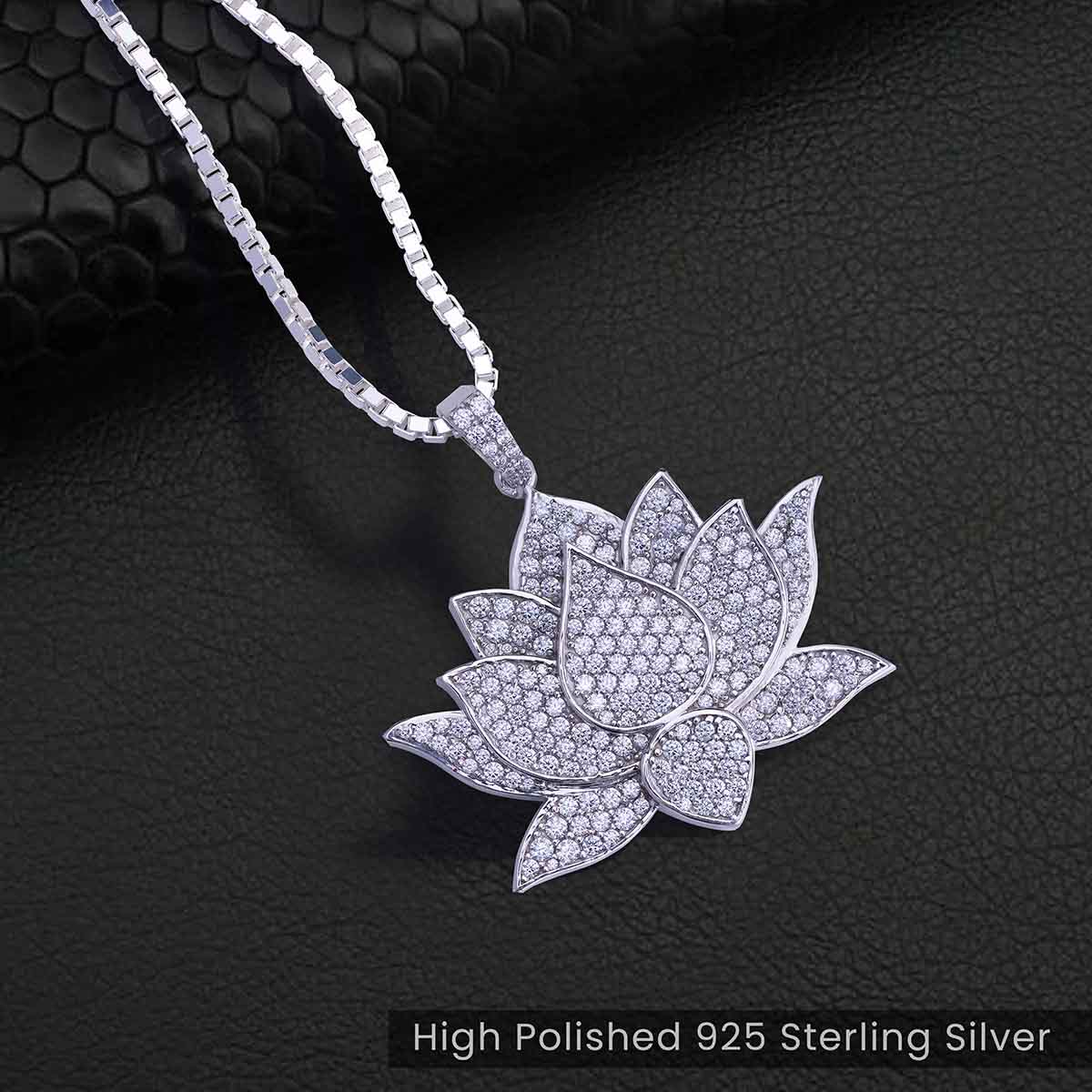 Moissanite Iced Out Lotus Necklace Sterling Silver Lotus Flower Pendant for Girls
