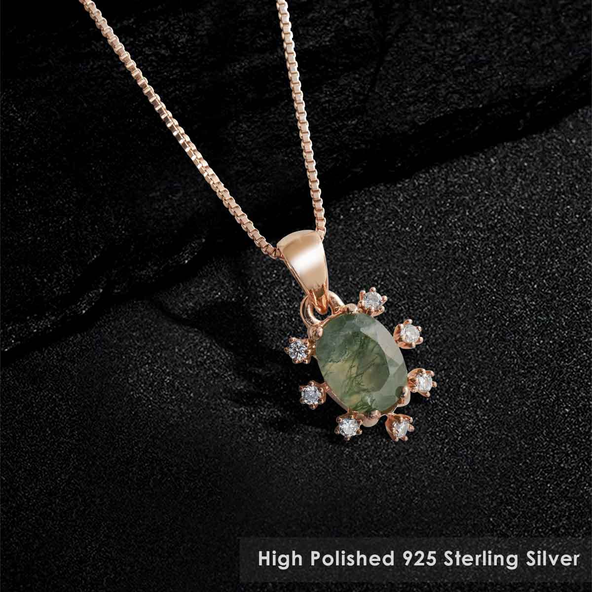 Oval Cut Moss Agate Necklace Pendant Natural Moss Agate Jewelry Healing Necklace