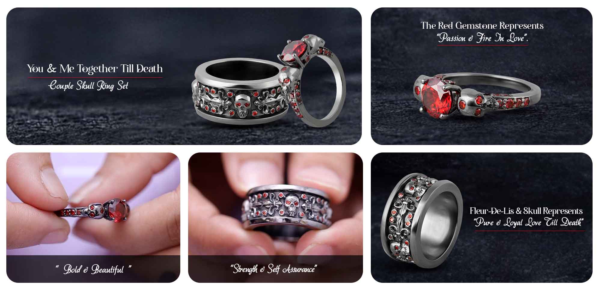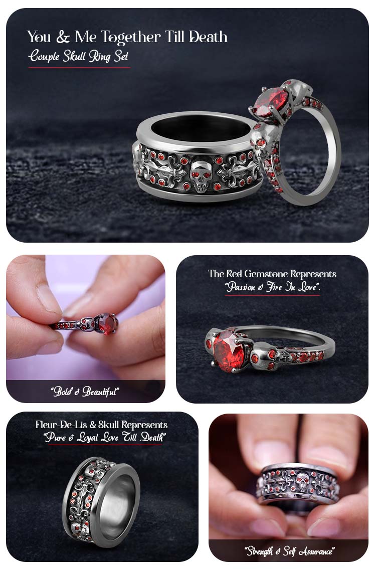 Skull Engagement Rings Set His Her Gothic Matching Couple Ring