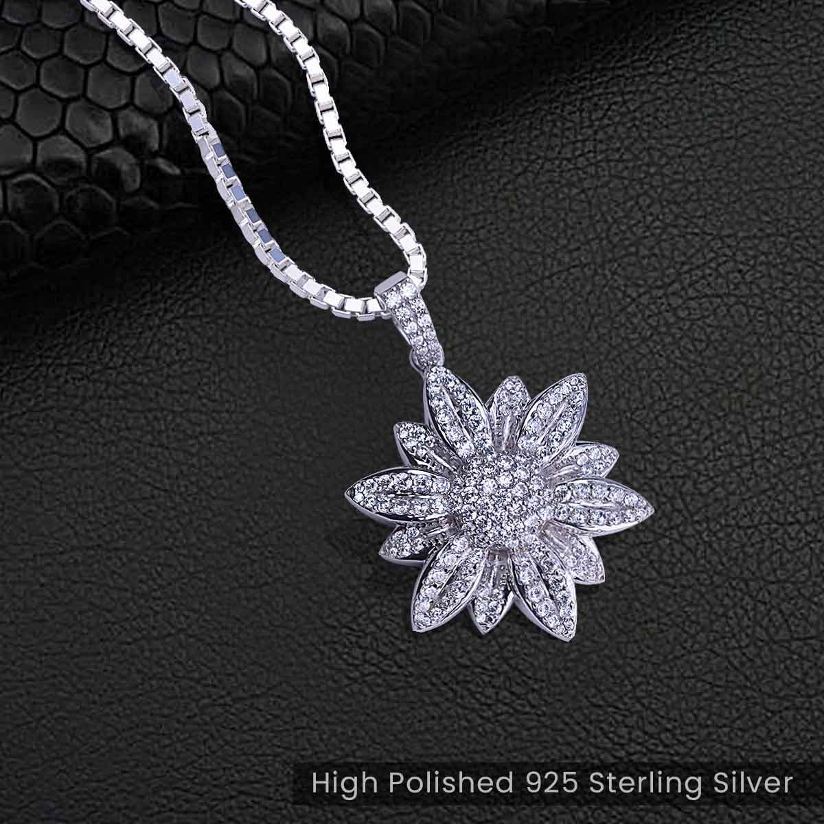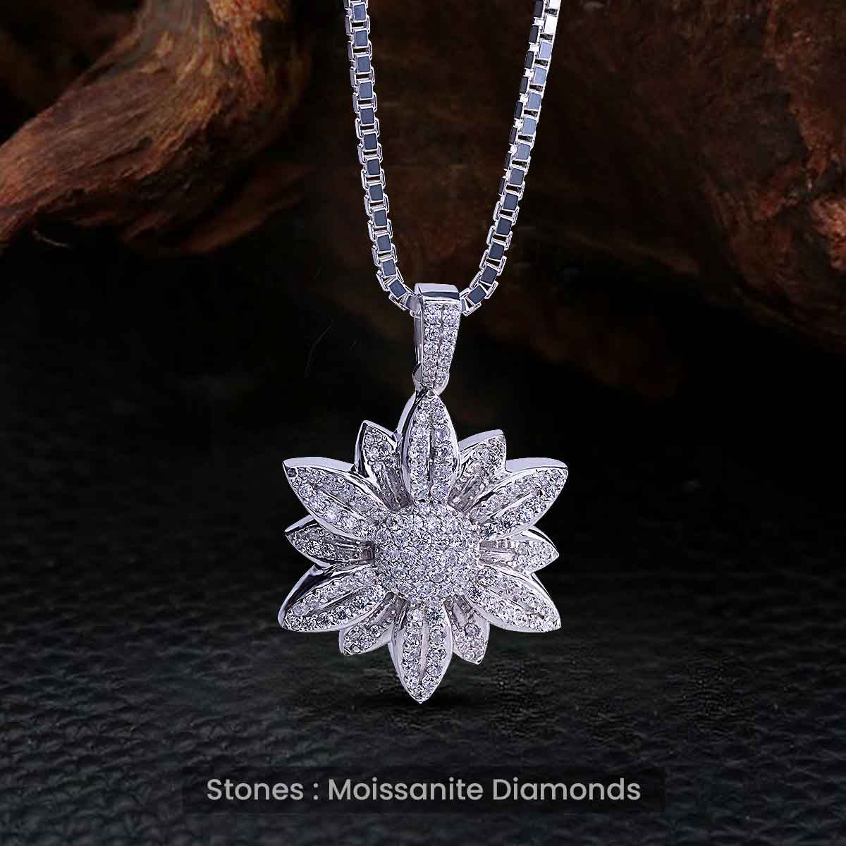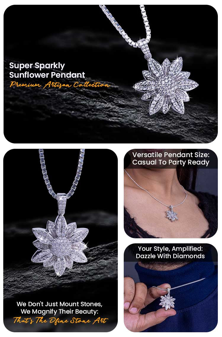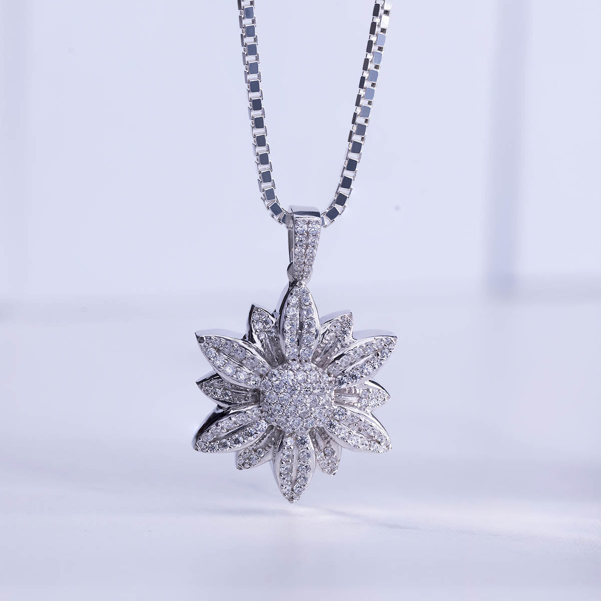 Sun Flower Necklace for Women Moissanite Iced Out Pendant