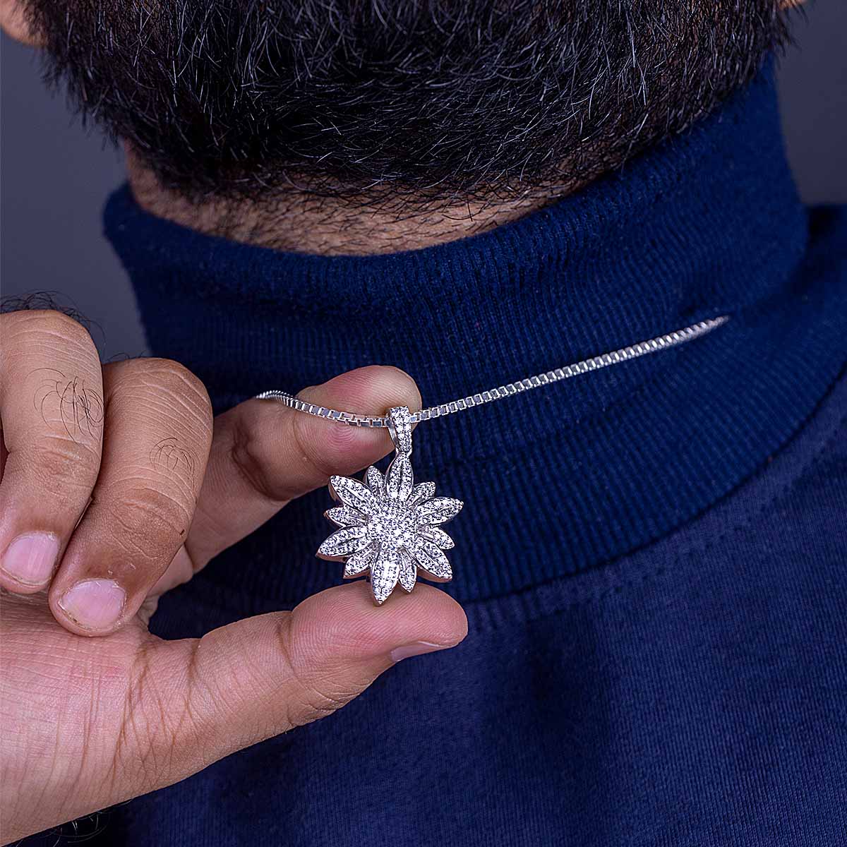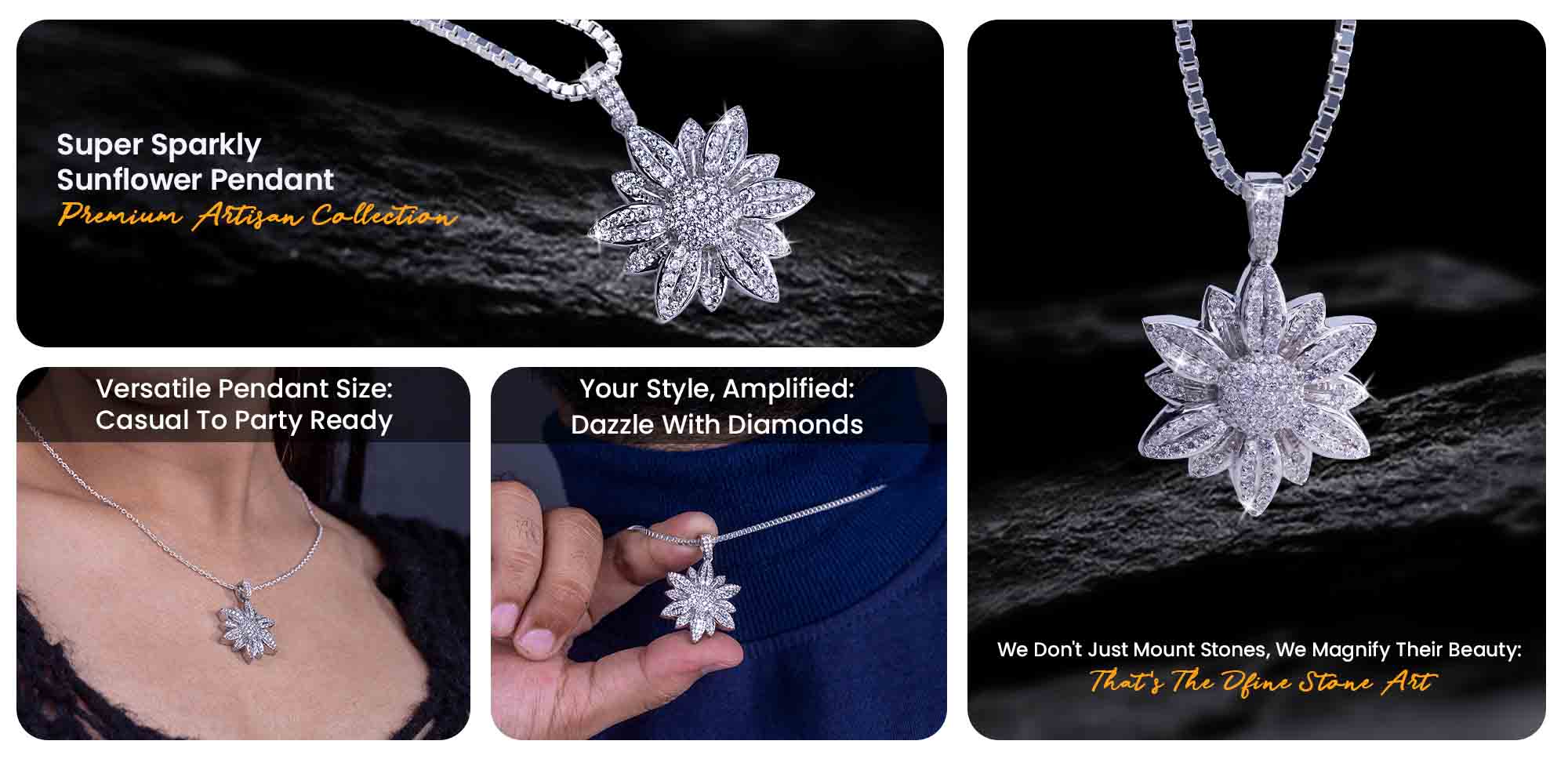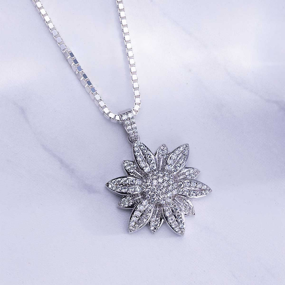 Sun Flower Necklace for Women Moissanite Iced Out Pendant