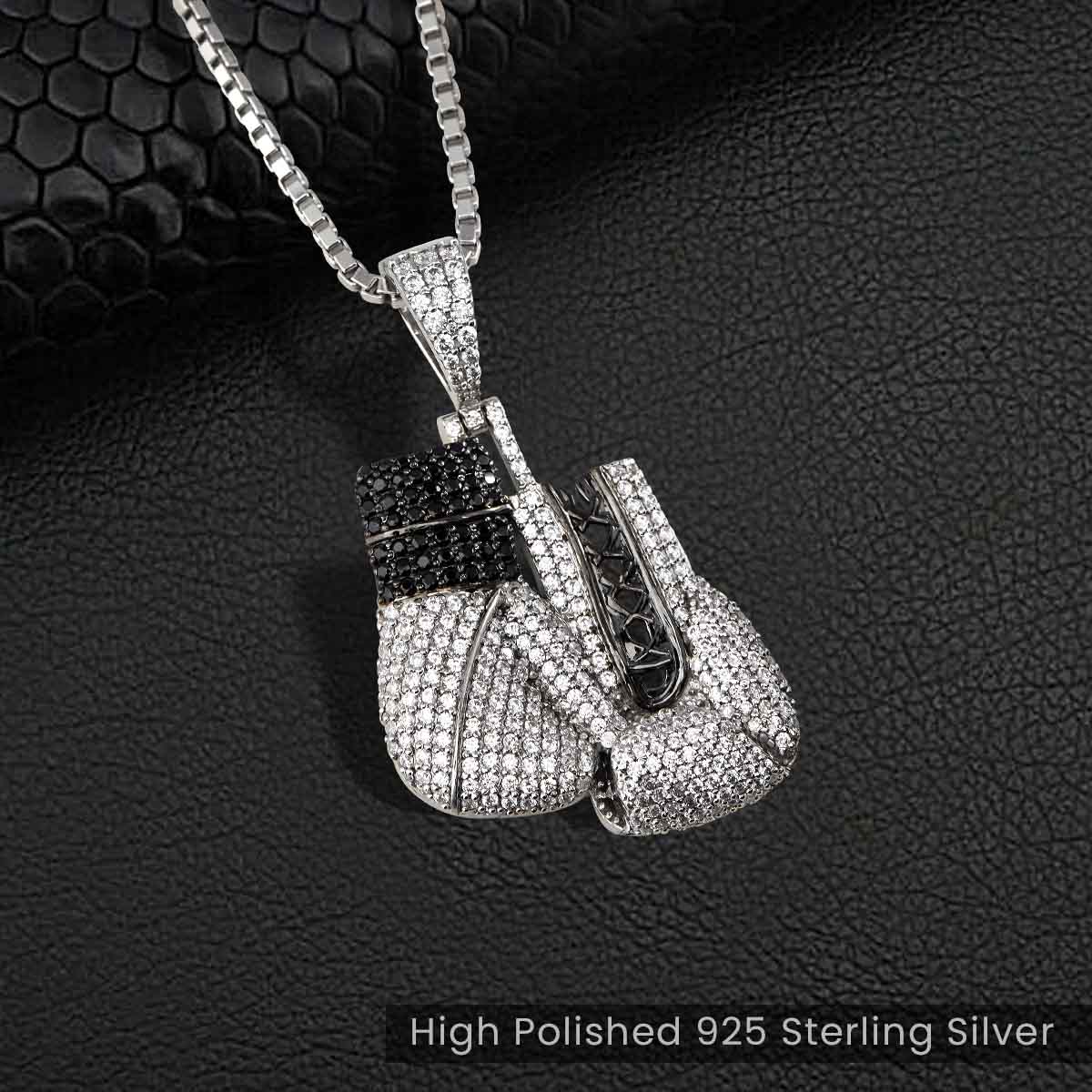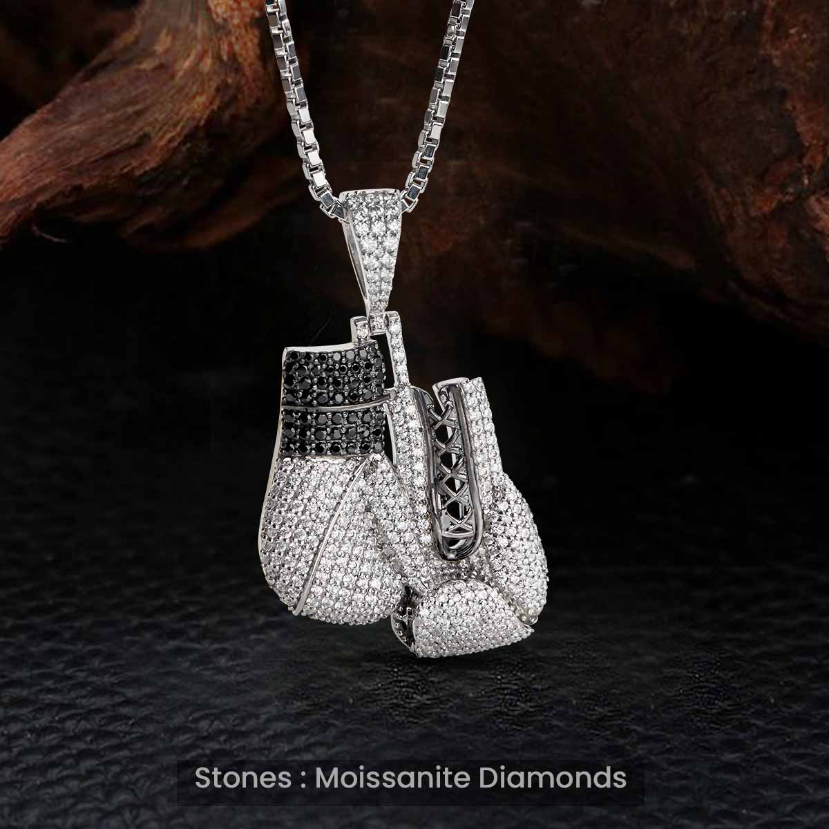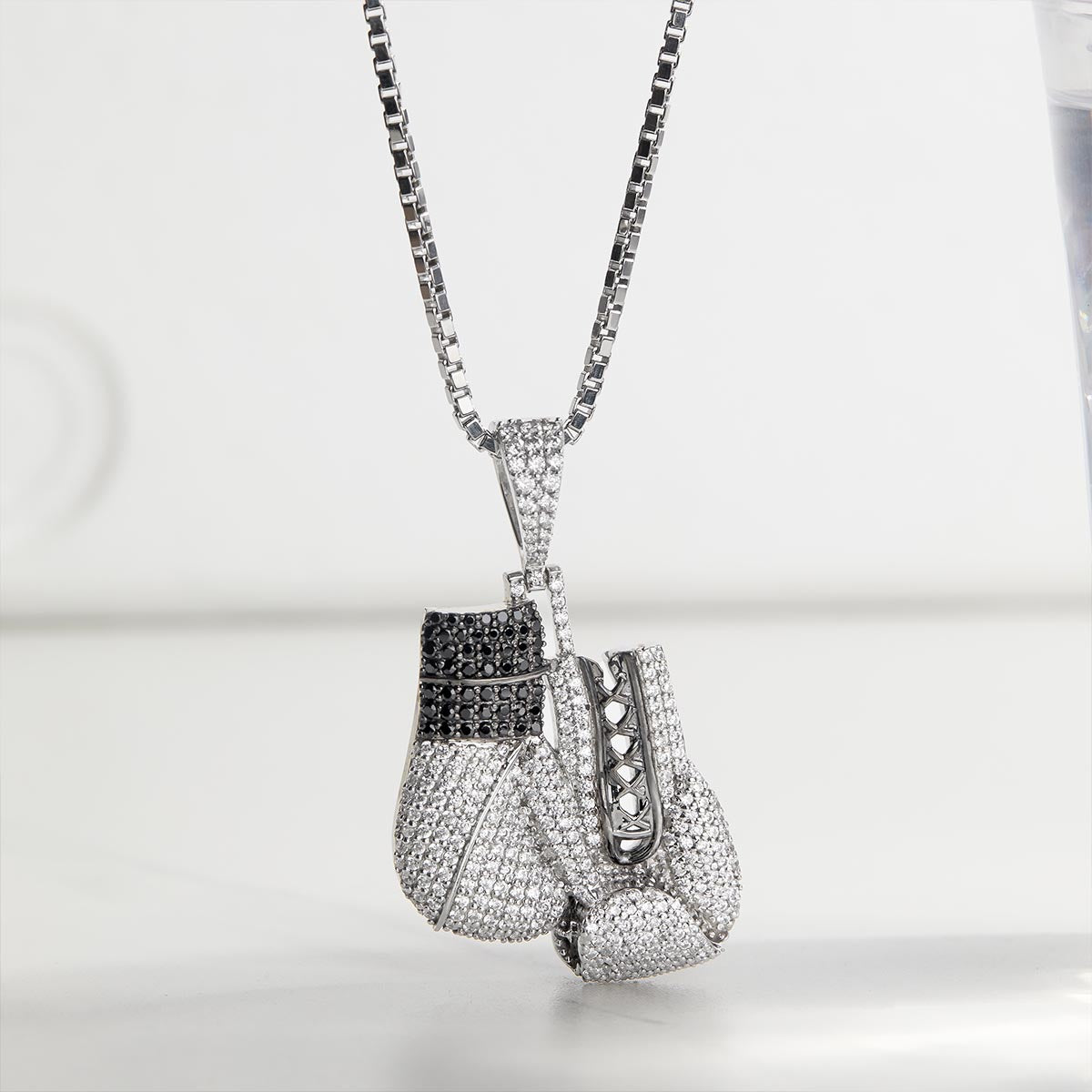 Two Tone Boxing Gloves Pendant Necklace Moissanite Iced Out Hip Hop Jewelry