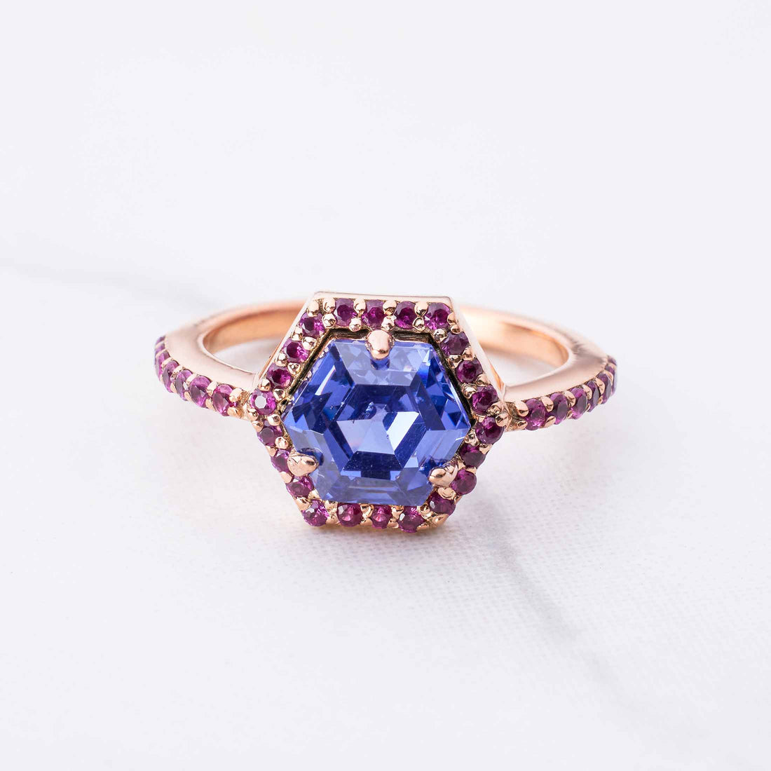 Hexagon Titanic Gemstone Ring Halo Cocktail Engagement Rings