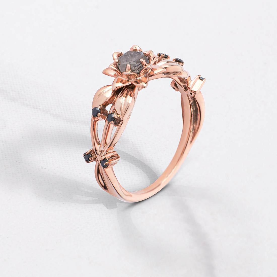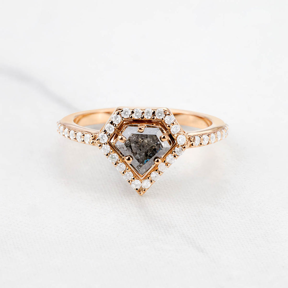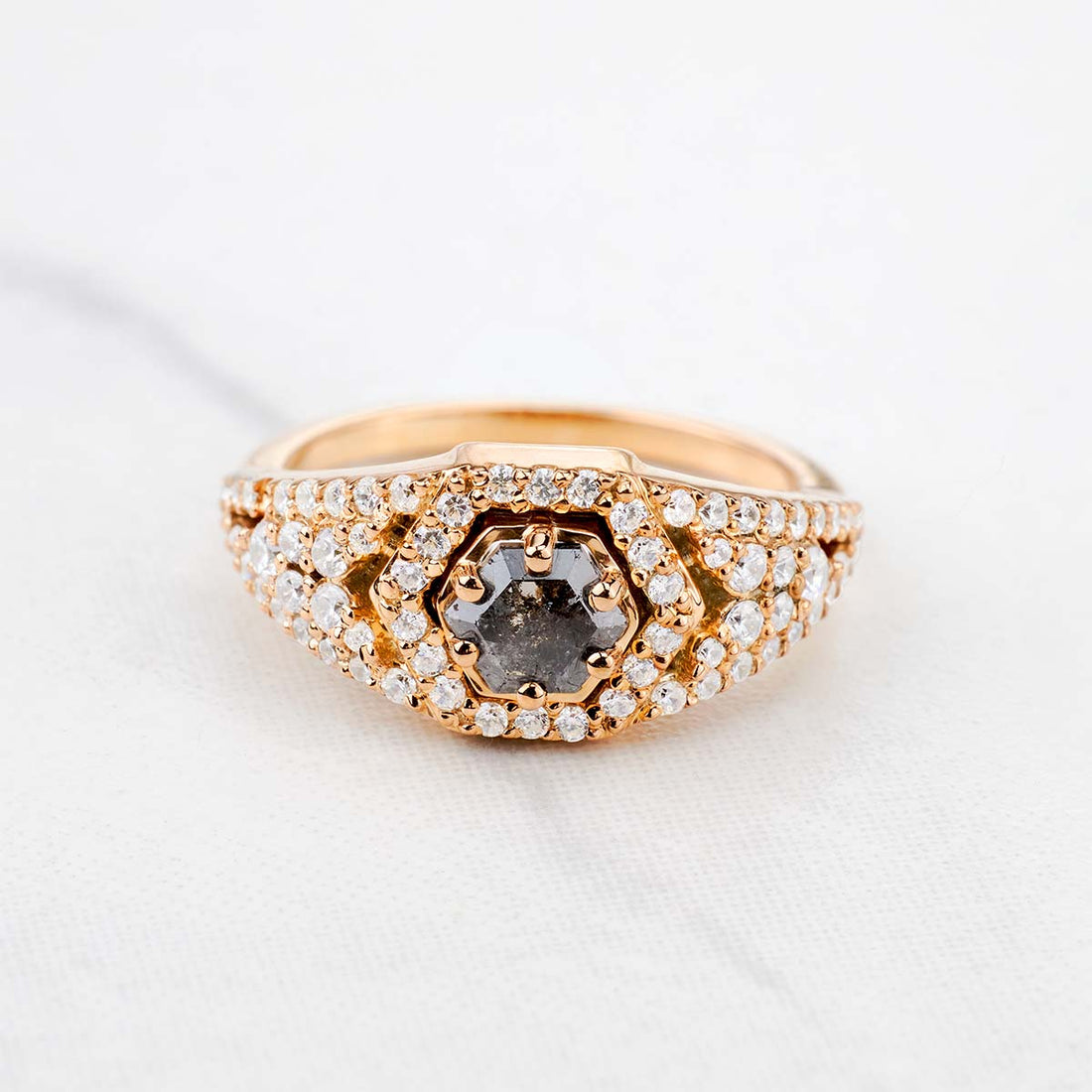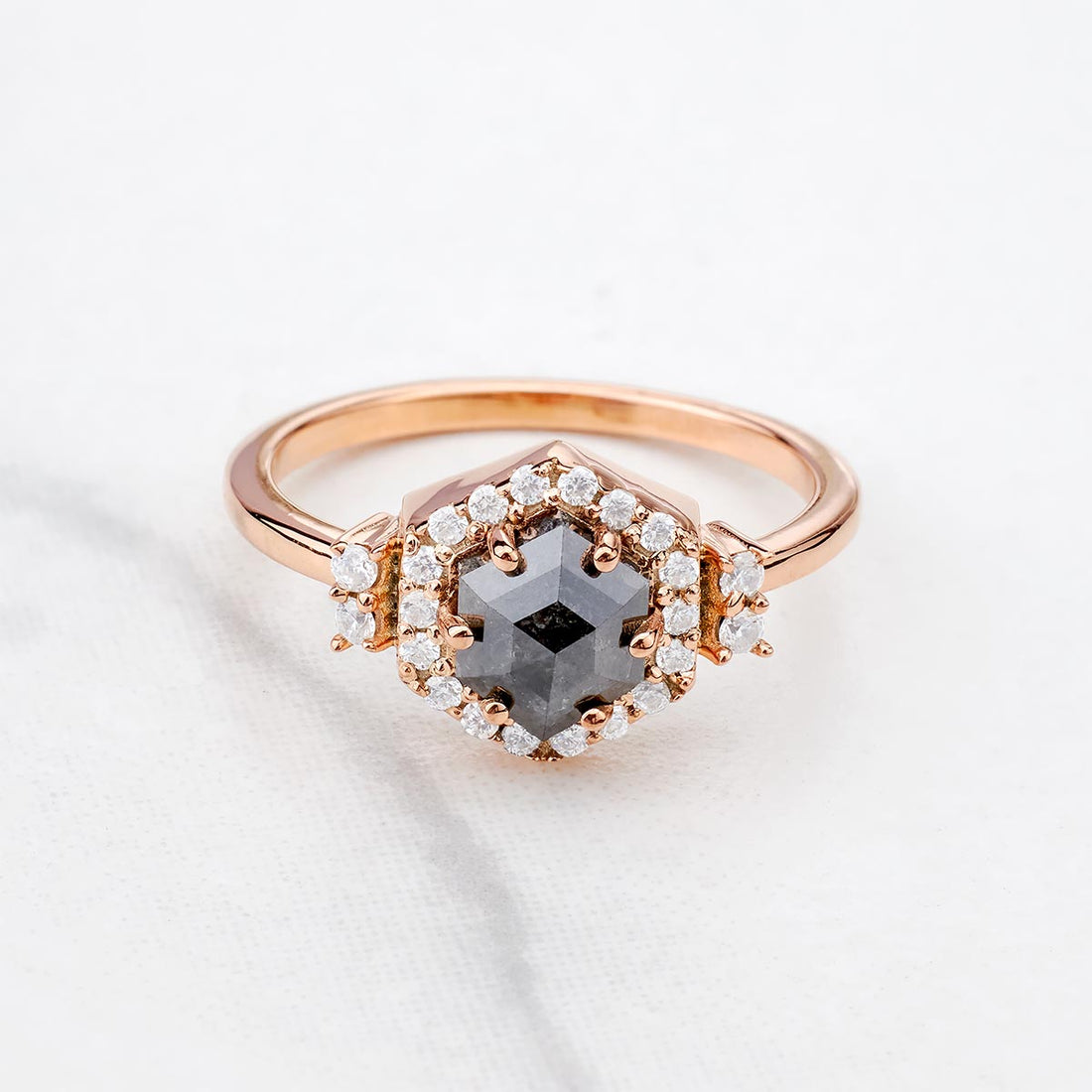 Hexagon Salt and Pepper Diamond Ring Engagement Rose Gold