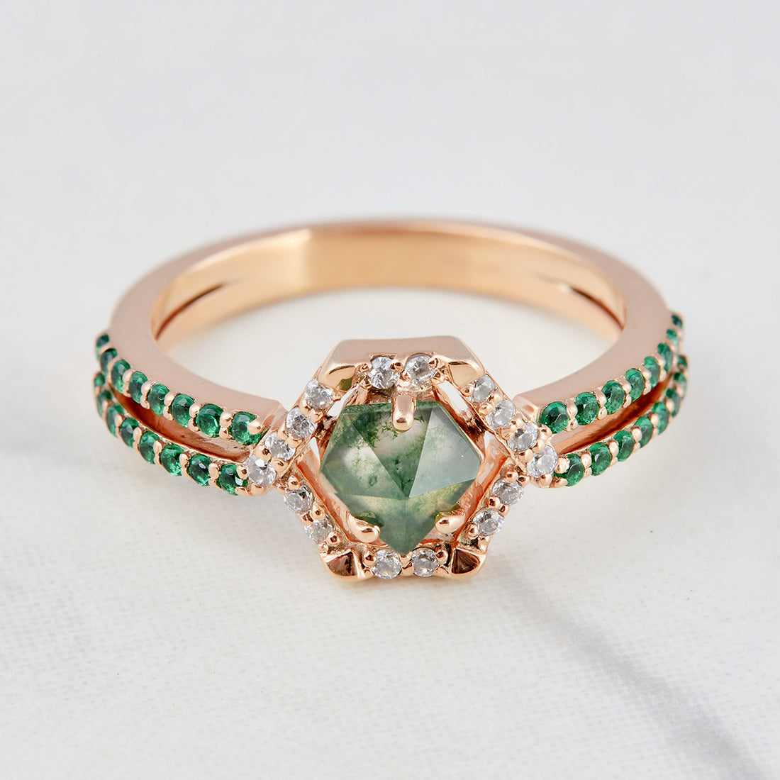 1.20CT Moss Agate Wedding Ring Womens Hexagon Rose Gold