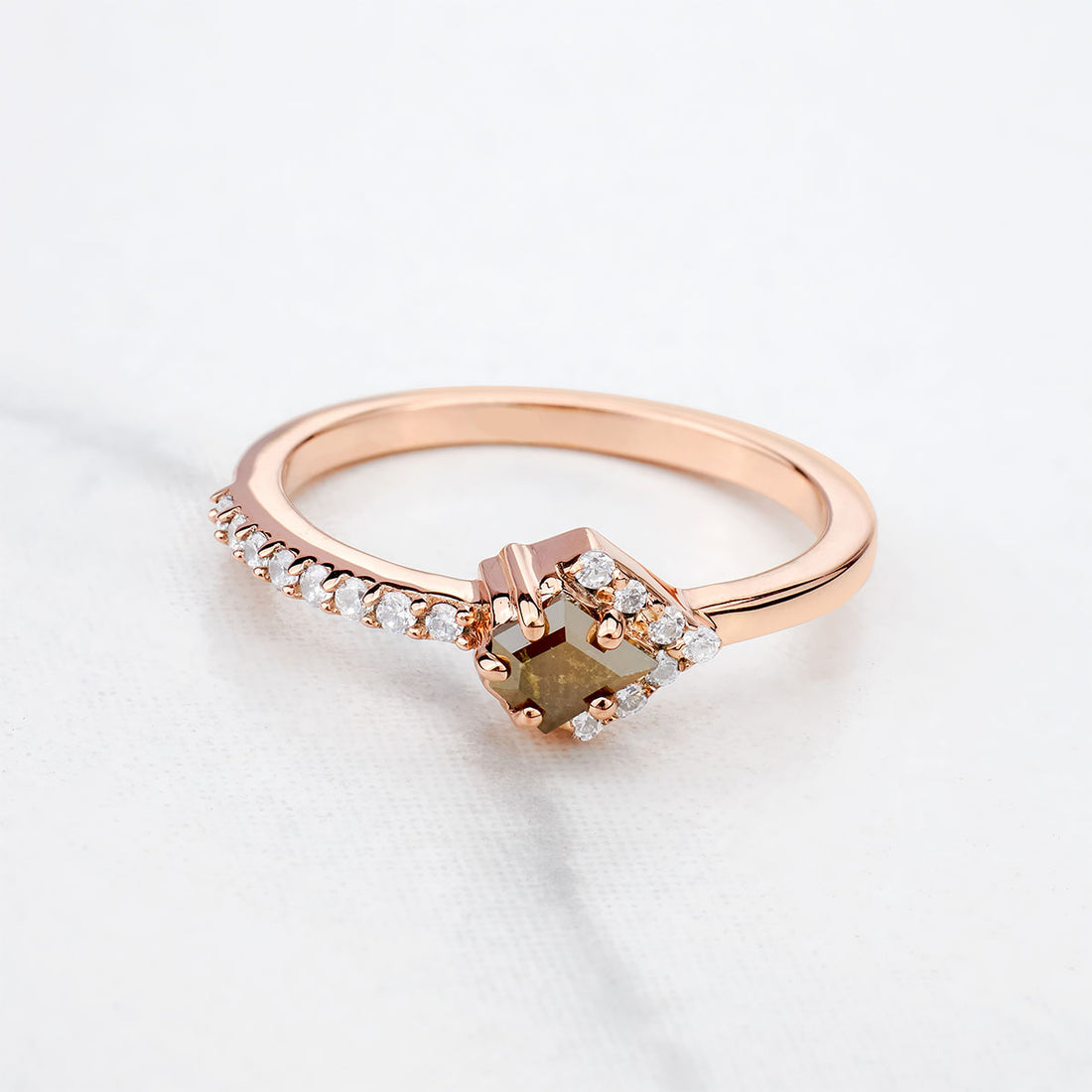 Pentagon Cut Fancy Rustic Diamond Engagement Ring Rose Gold