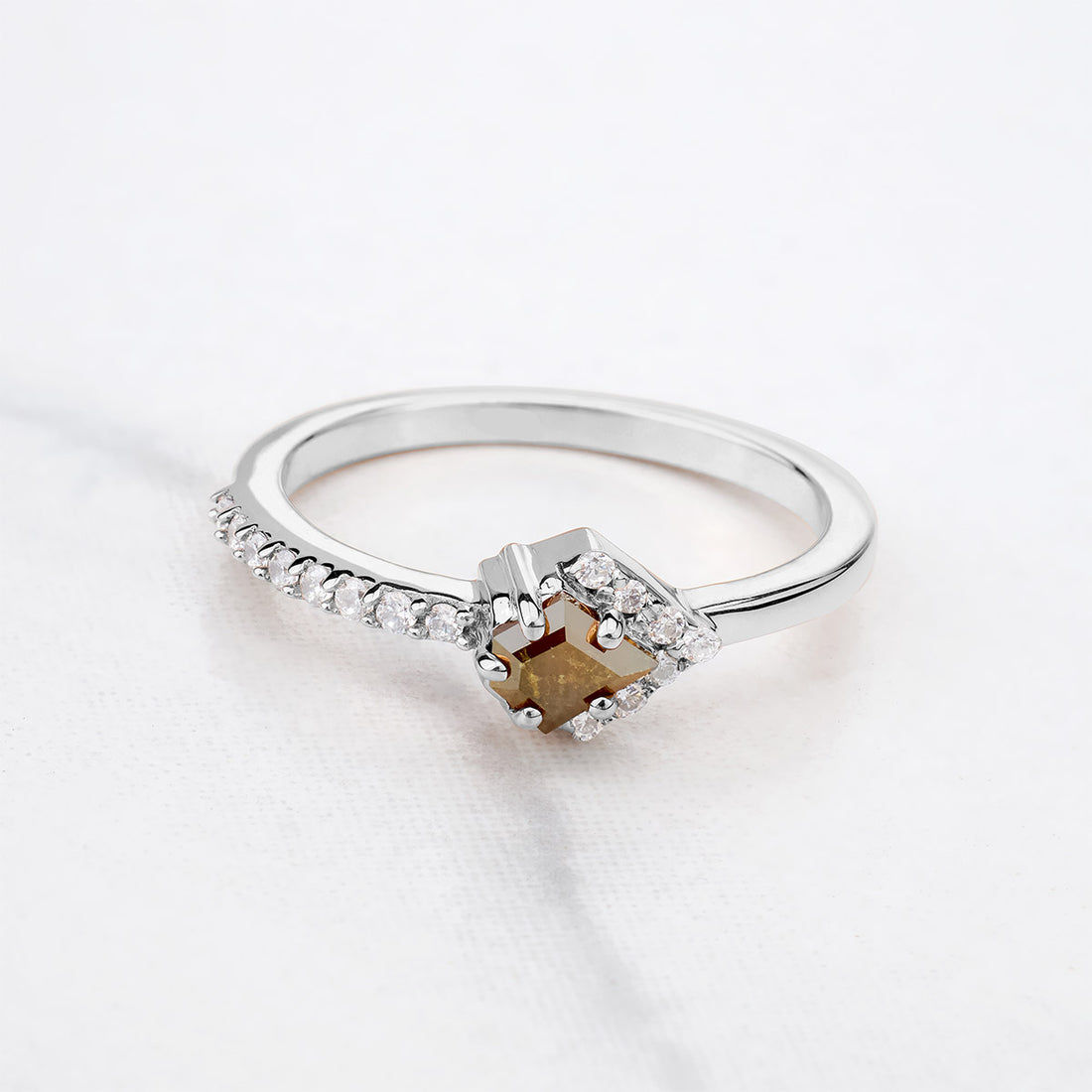 Hexagon Cut Grey Natural Rustic Salt and Pepper Diamond Ring