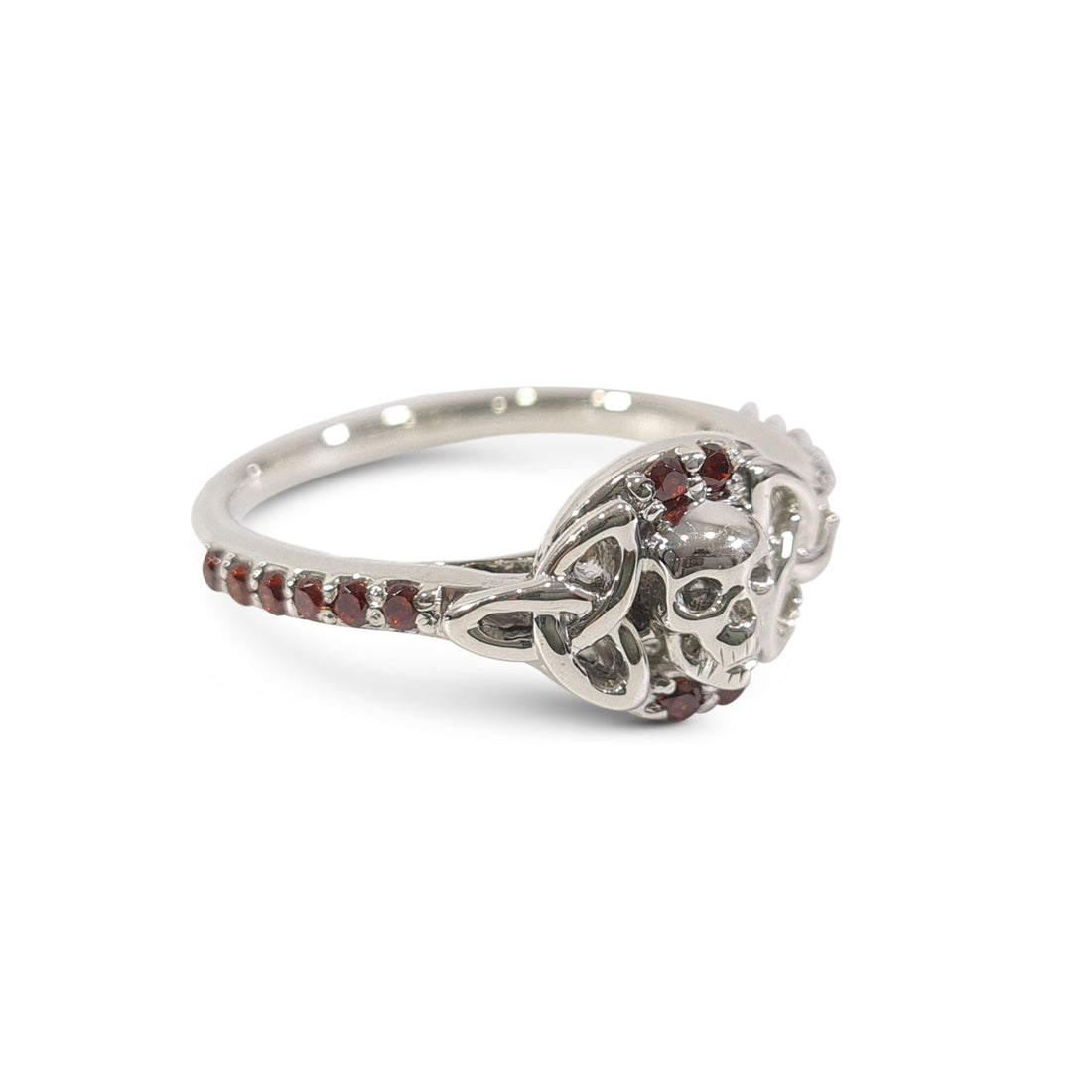 Round Cut Approx 0.22TCW Red Synthetic Garnet Gemstones Celtic Trinity Gothic Spooky Skull Engagement Ring...