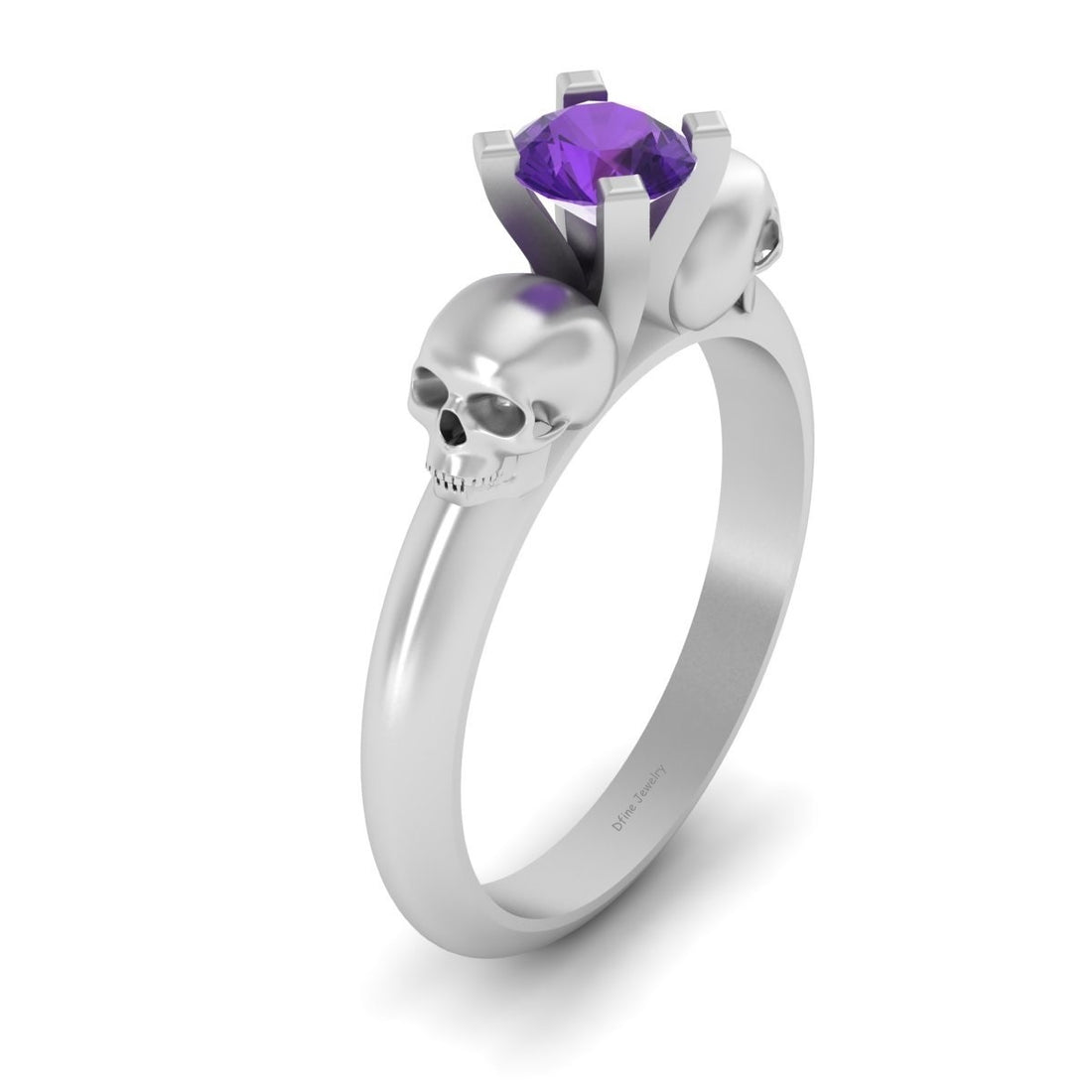 Solitaire Amethyst Skull Ring Gothic Engagement Ring White Gold