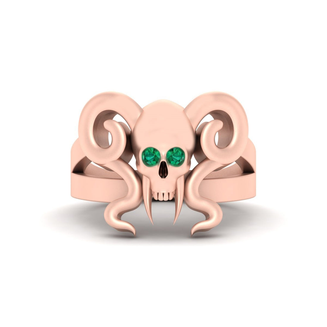 Titanic Gemstone Skull Ring Kite Cut Engagement Ring Rose Gold
