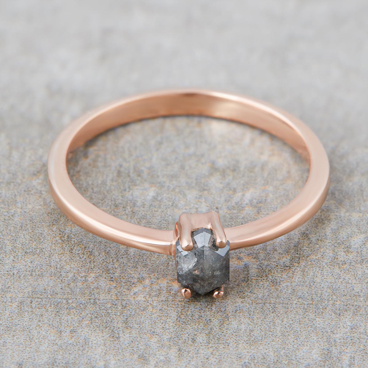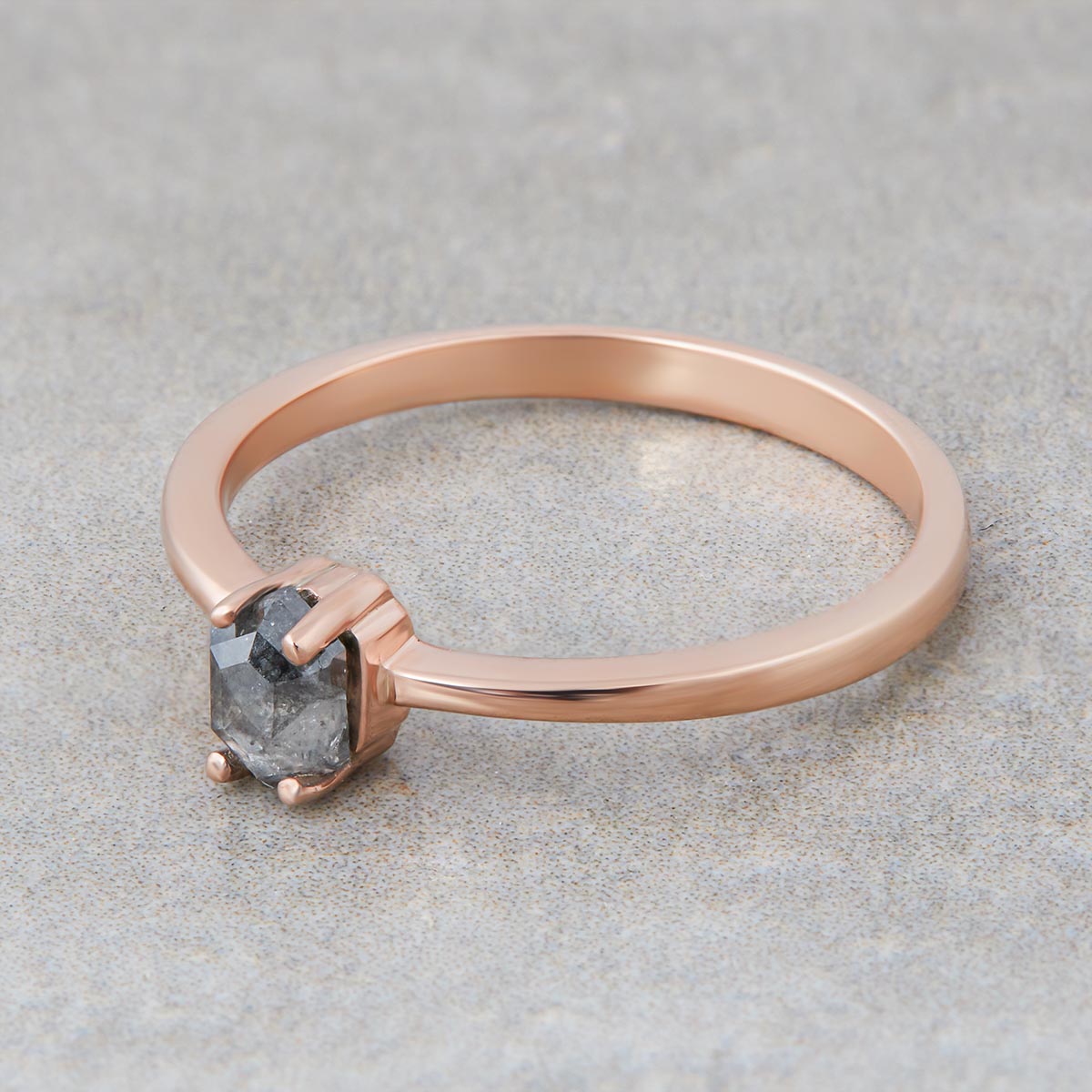 0.40CT Salt and Pepper Diamond Engagement Ring Hexagon Cut