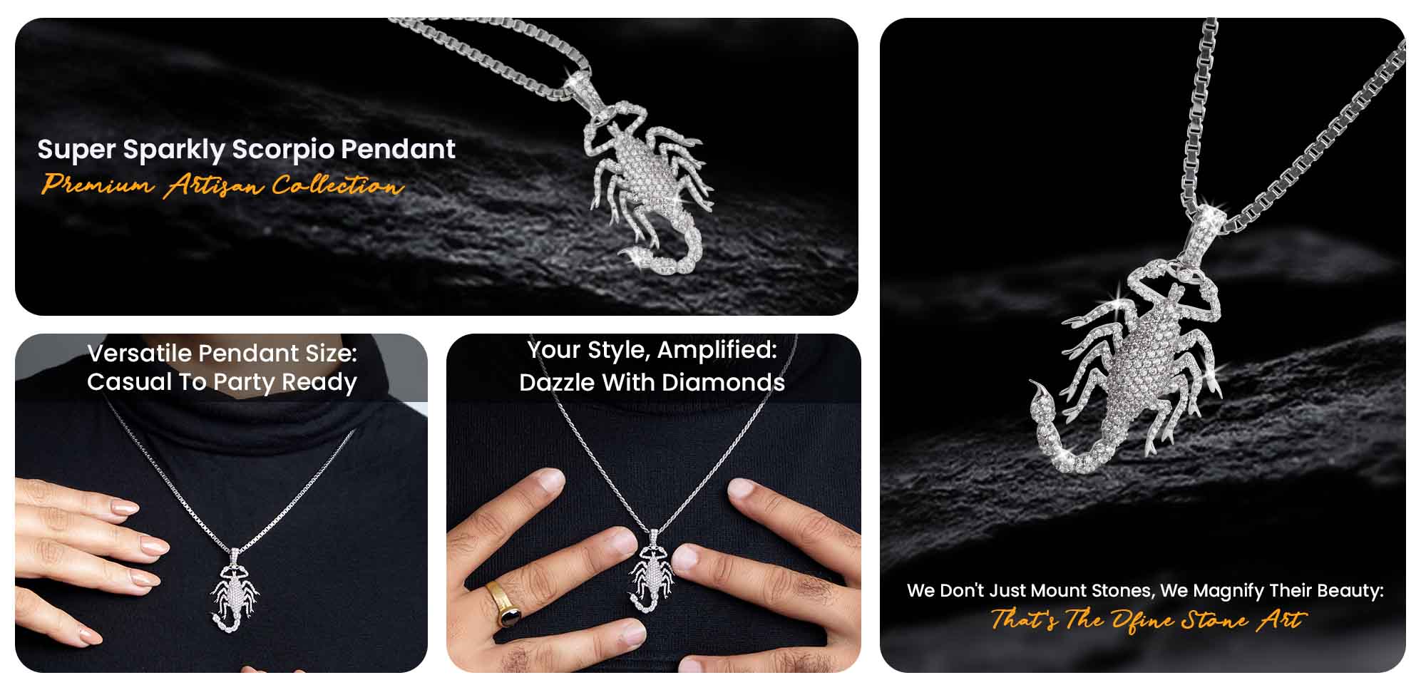 Learn moreCZ Diamond Scorpion Necklace Iced Out Scorpion Pendant Silver