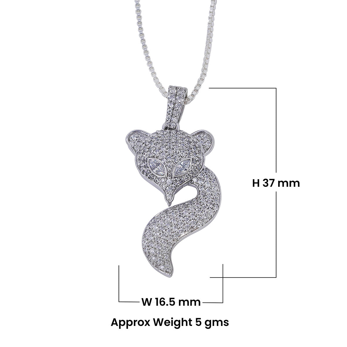 Diamond Fox Pendant Necklace Iced Out Animal Jewelry Silver