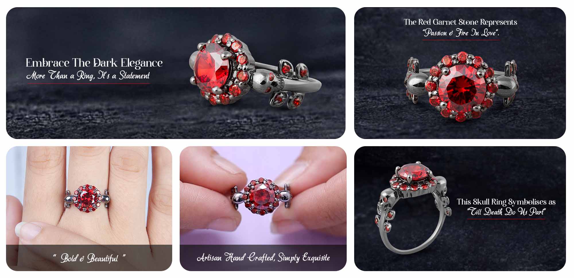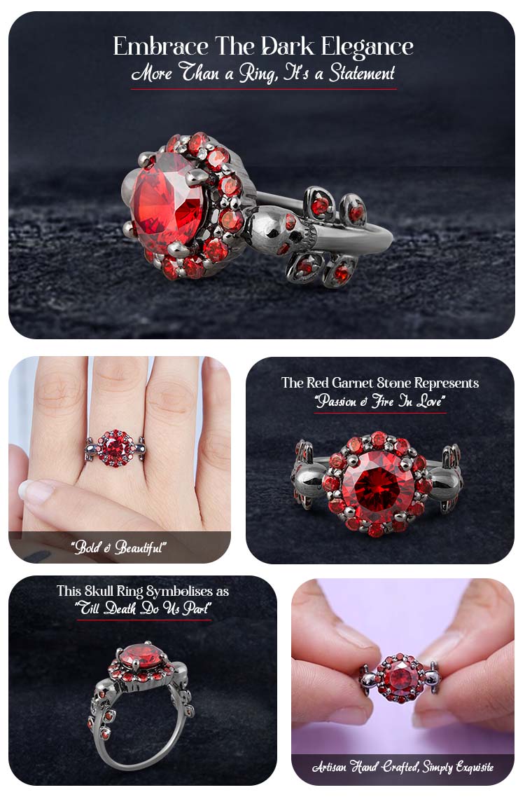 Halo Garnet Skull Wedding Ring Gothic Vampire Skull Ring Silver