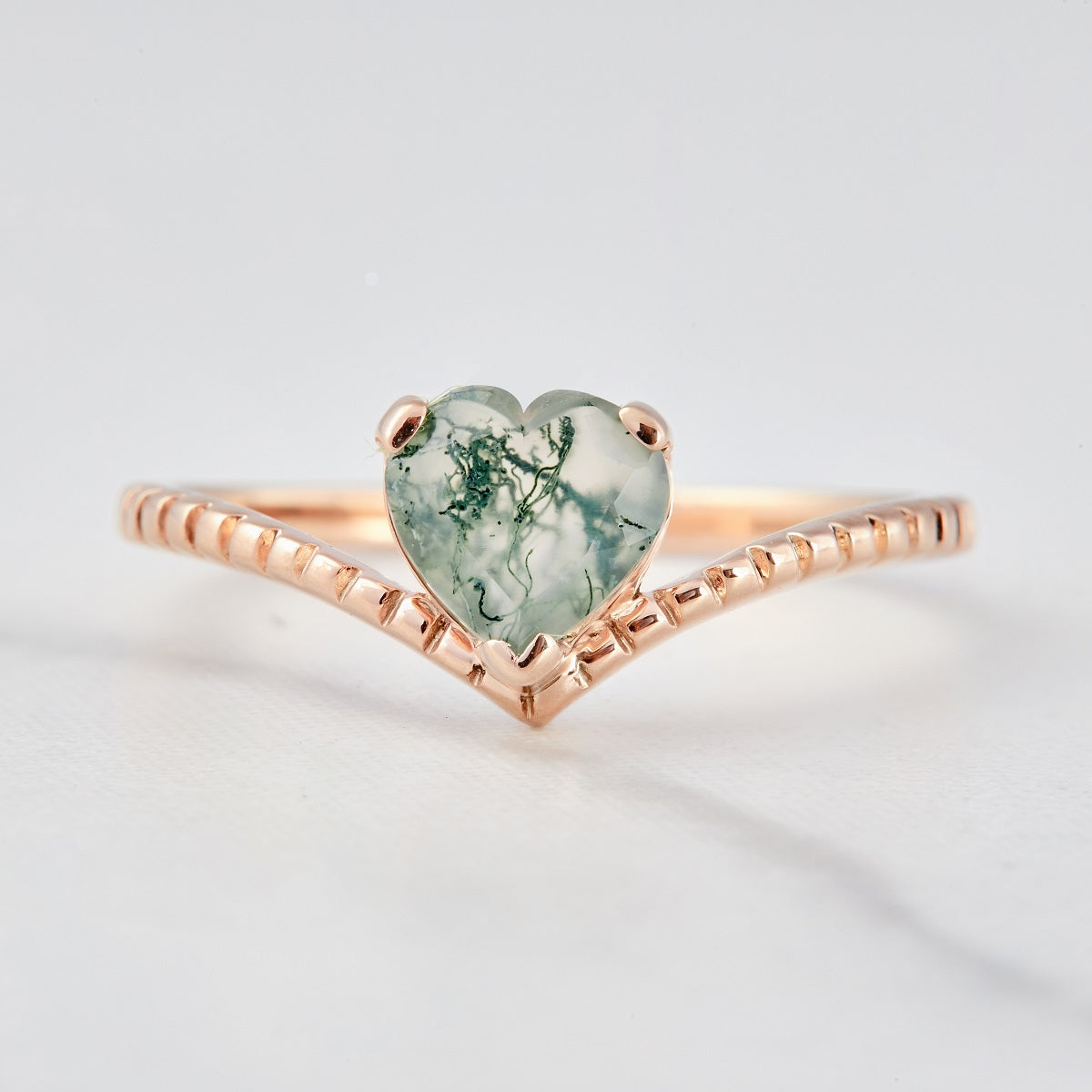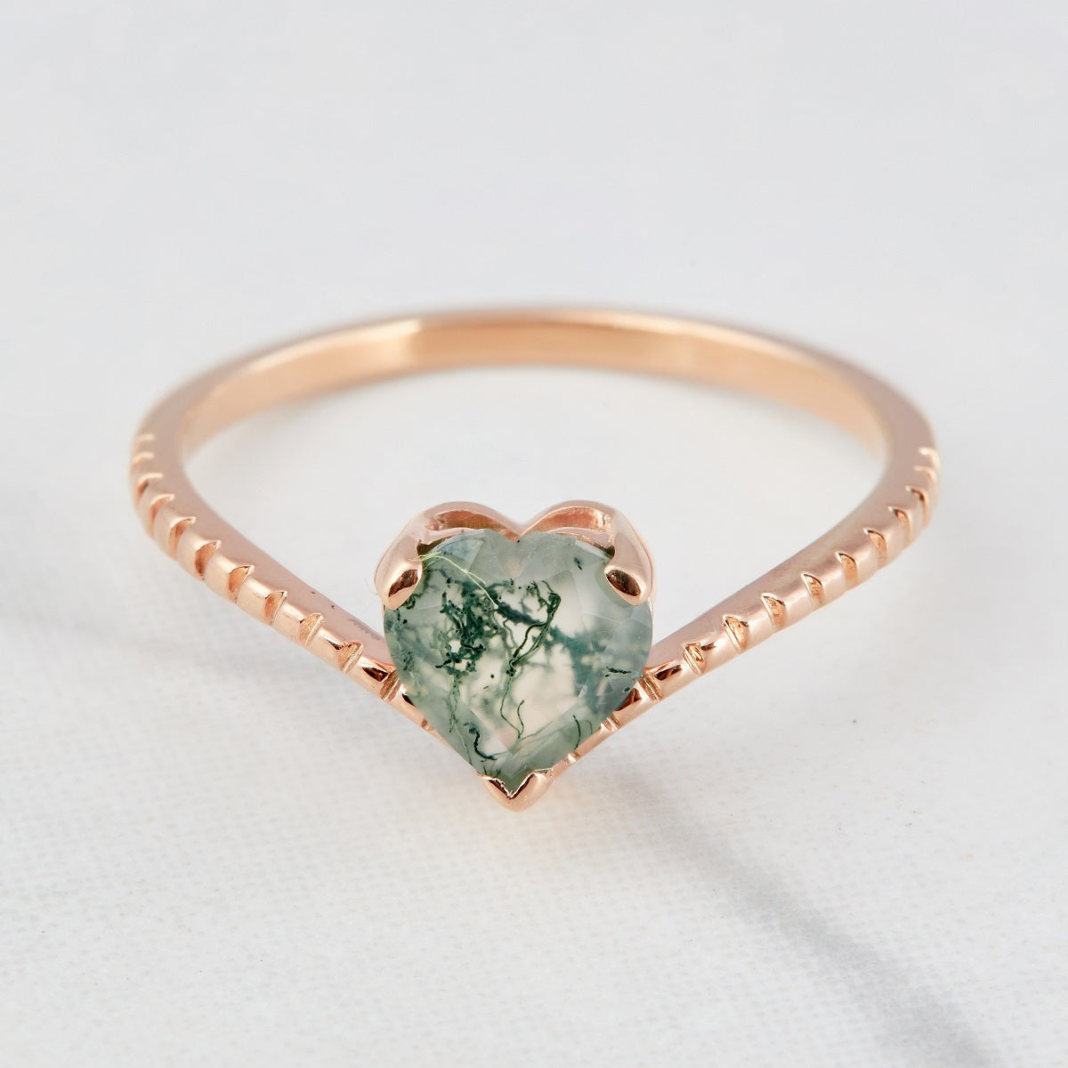 Learn moreHeart Moss Agate Ring Healing Gemstone Rose Gold Promise Ring