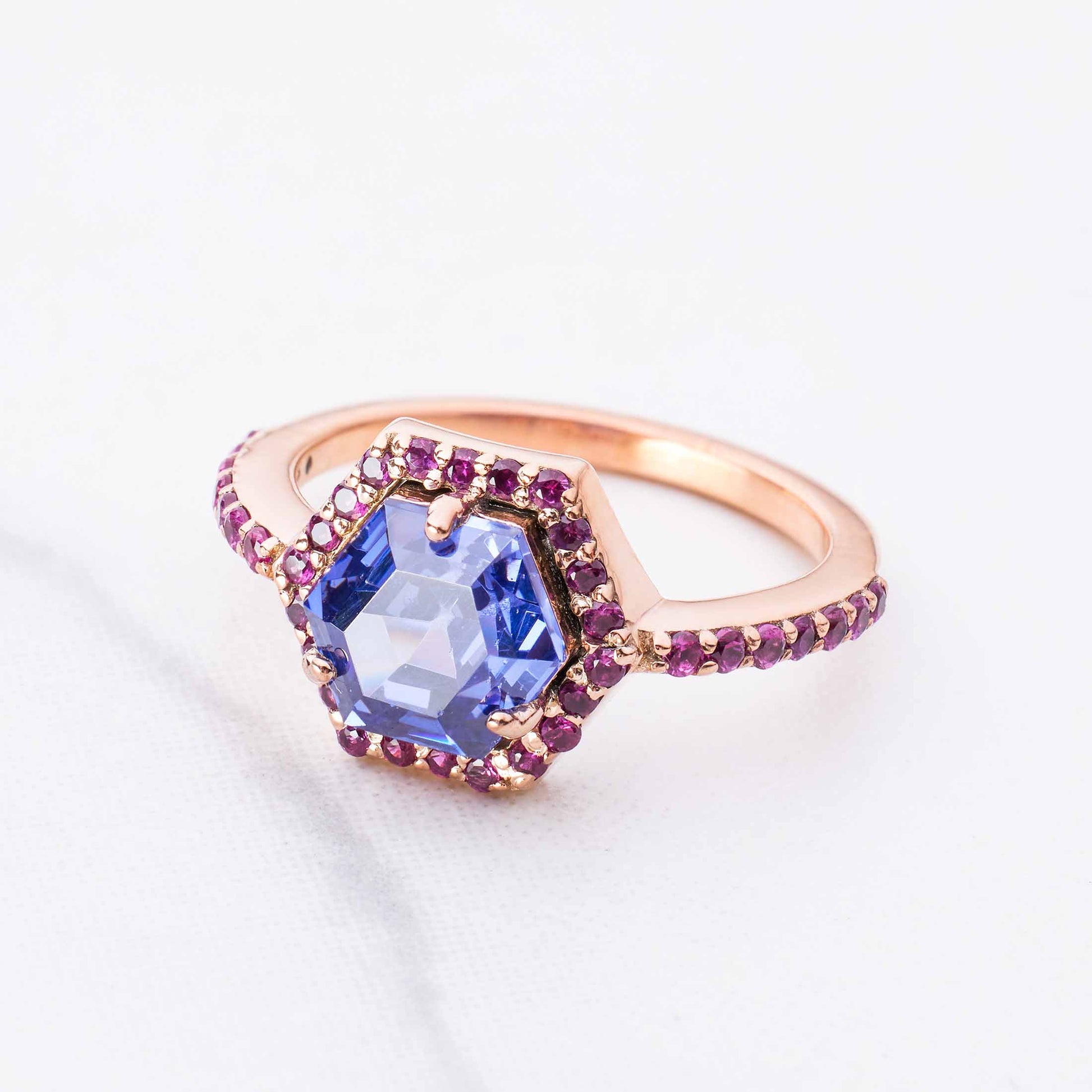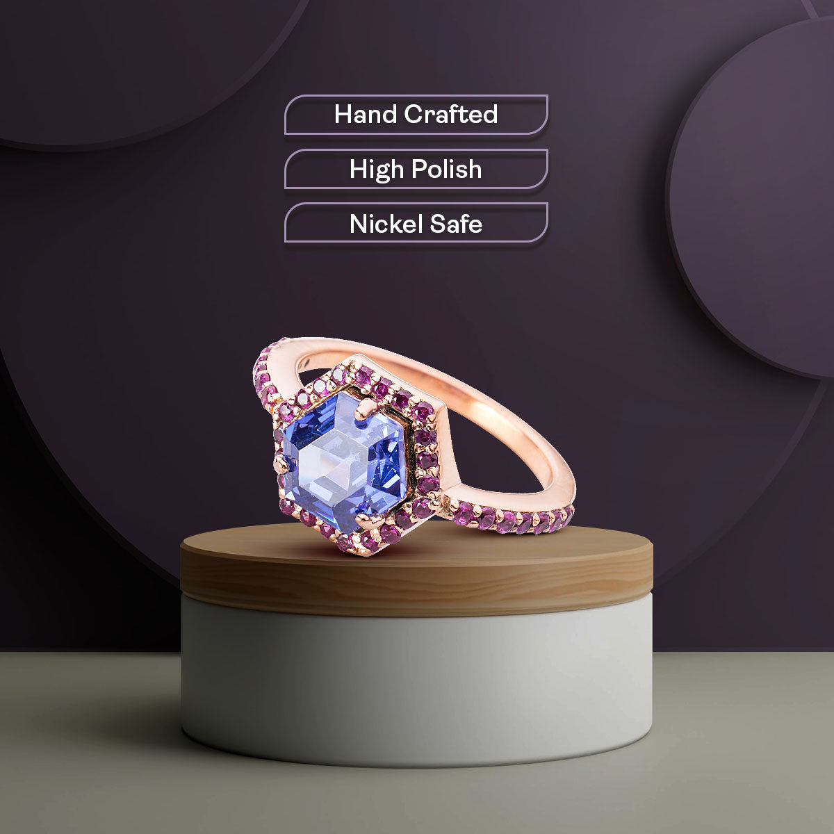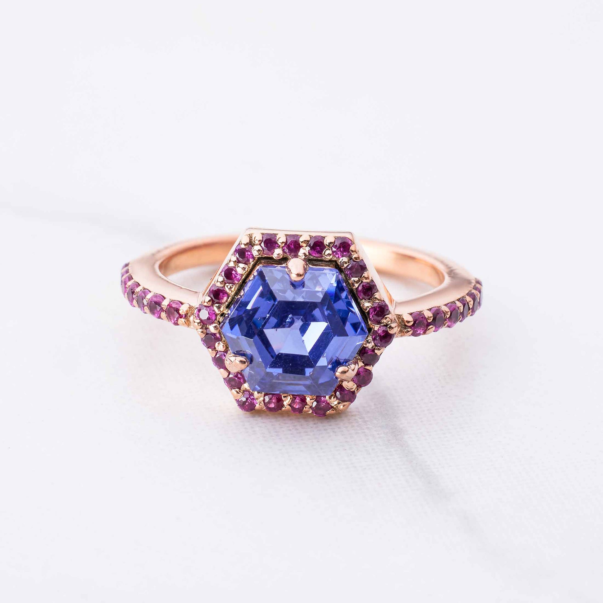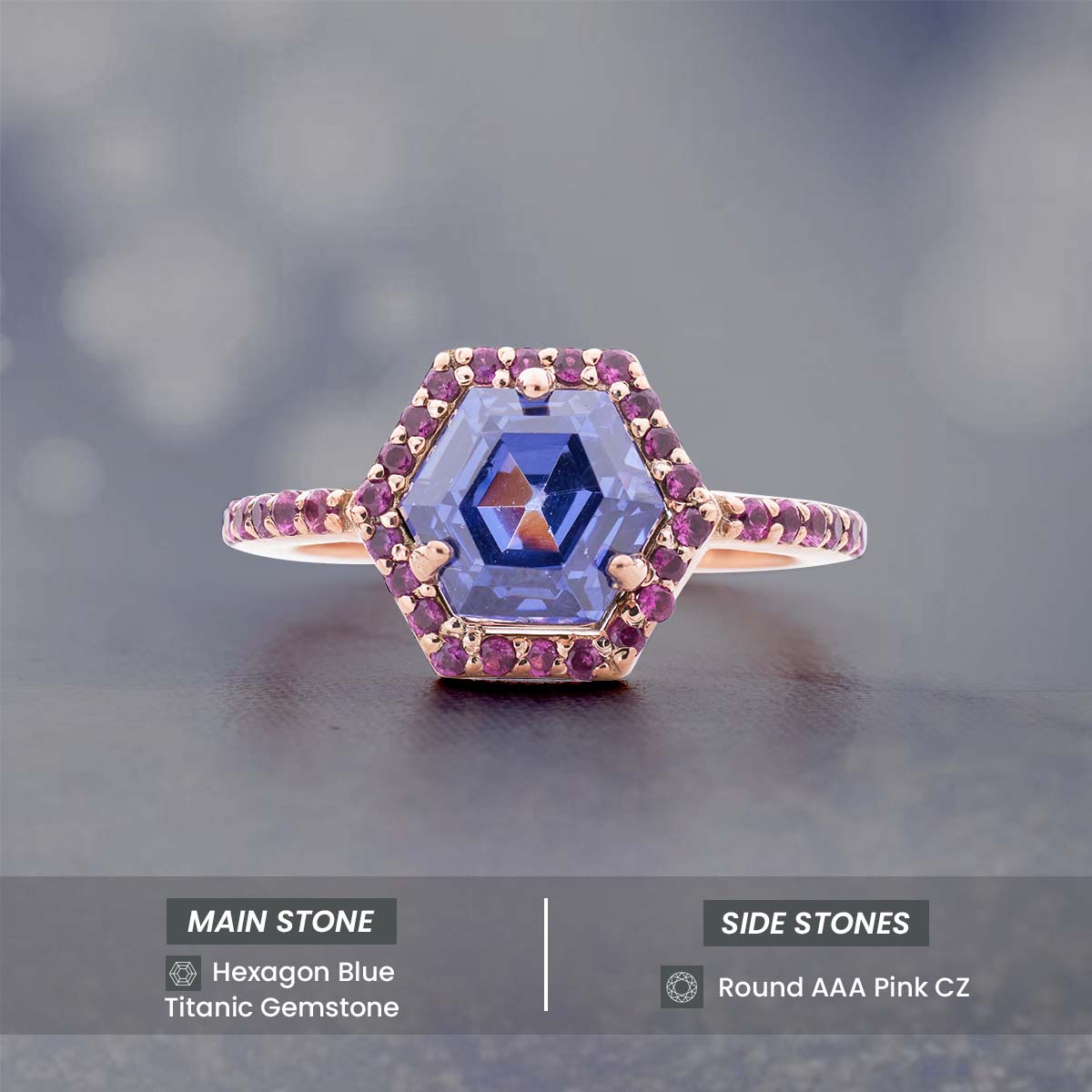 Hexagon Titanic Gemstone Ring Halo Cocktail Engagement Rings
