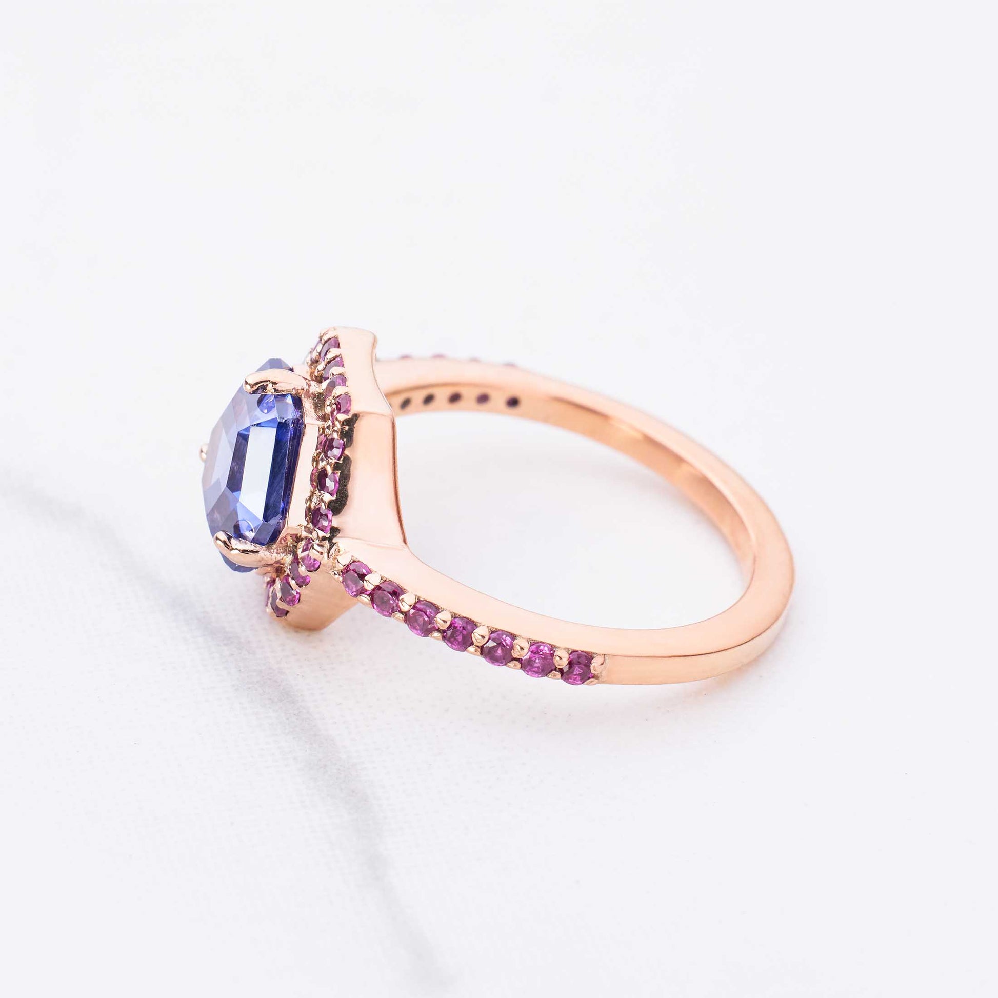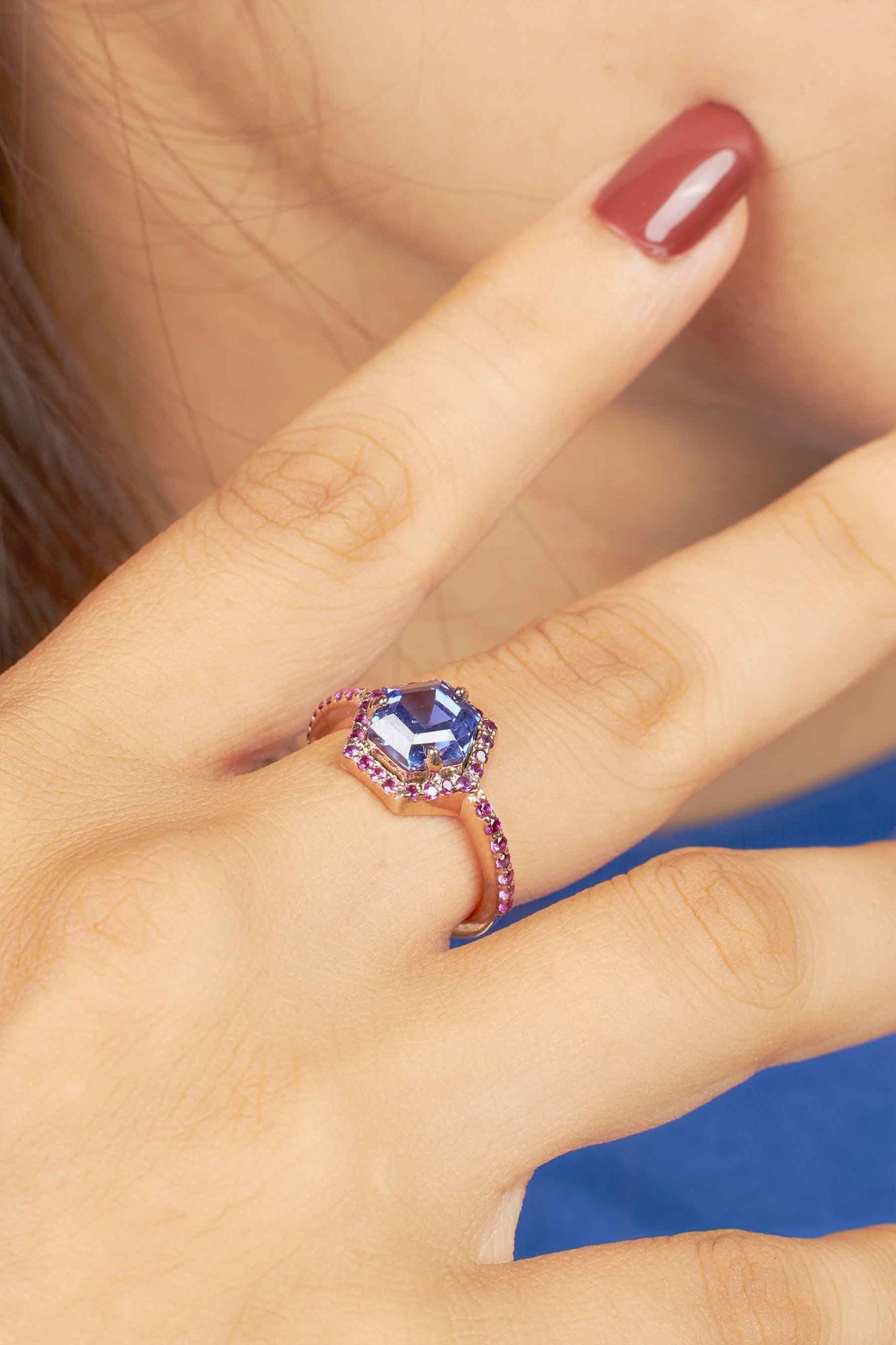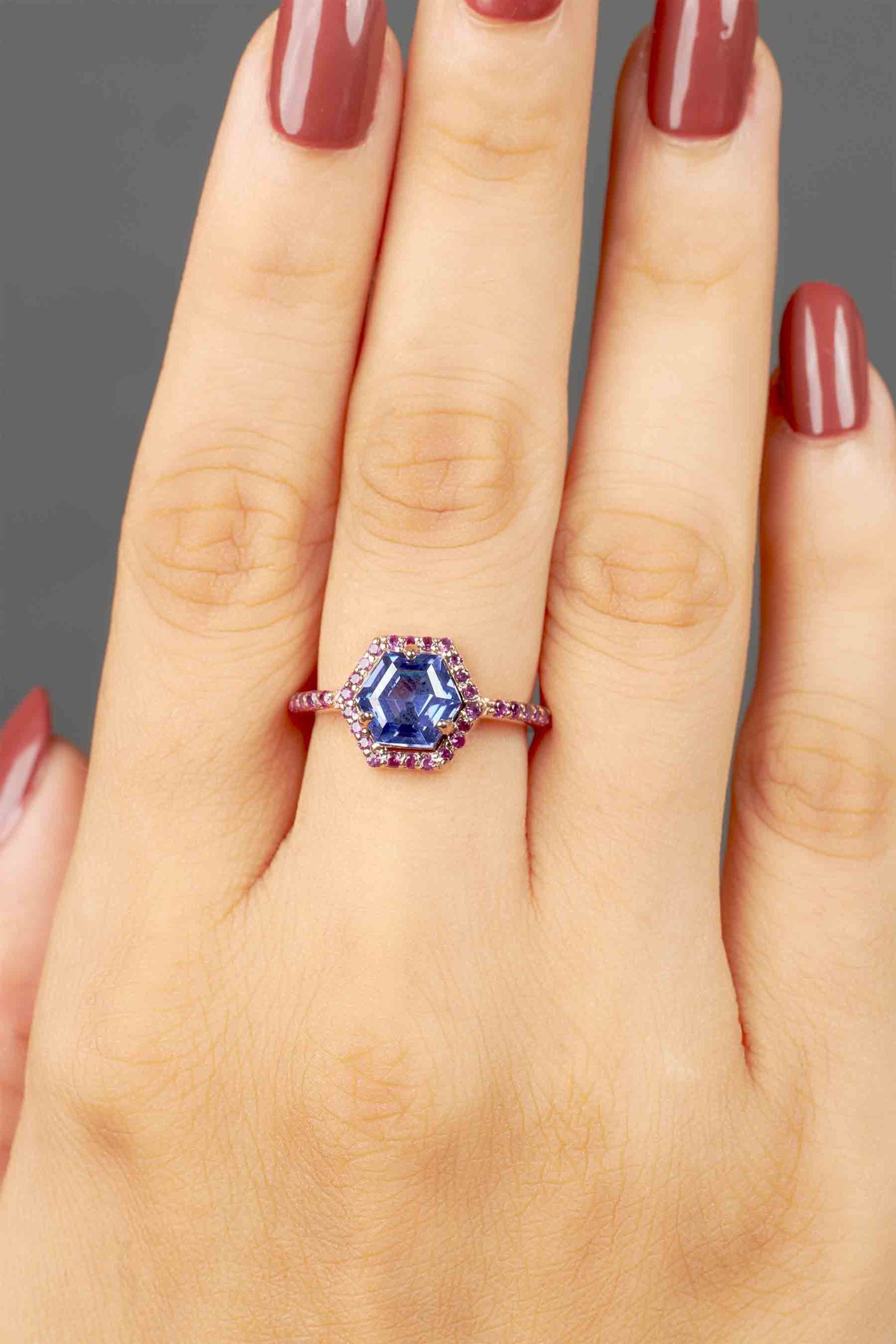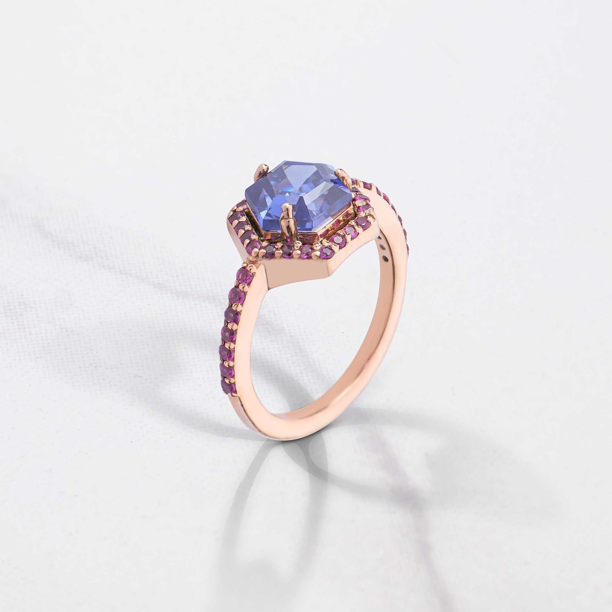 Hexagon Titanic Gemstone Ring Halo Cocktail Engagement Rings